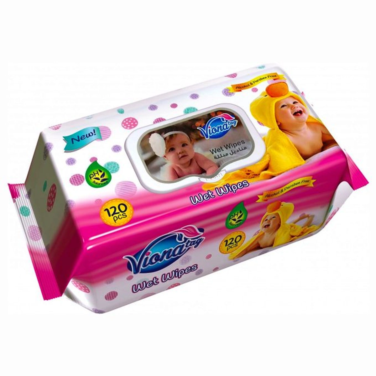 مناديل Viona المبللة 120 قطعة تمنحك تنظيفًا لطيفًا ومنعشًا لبشرتك يوميًا. تركيبة خالية من الكحول والبارابين، مثالية للاستخدامات المتعددة ولجميع أفراد الأسرة.
