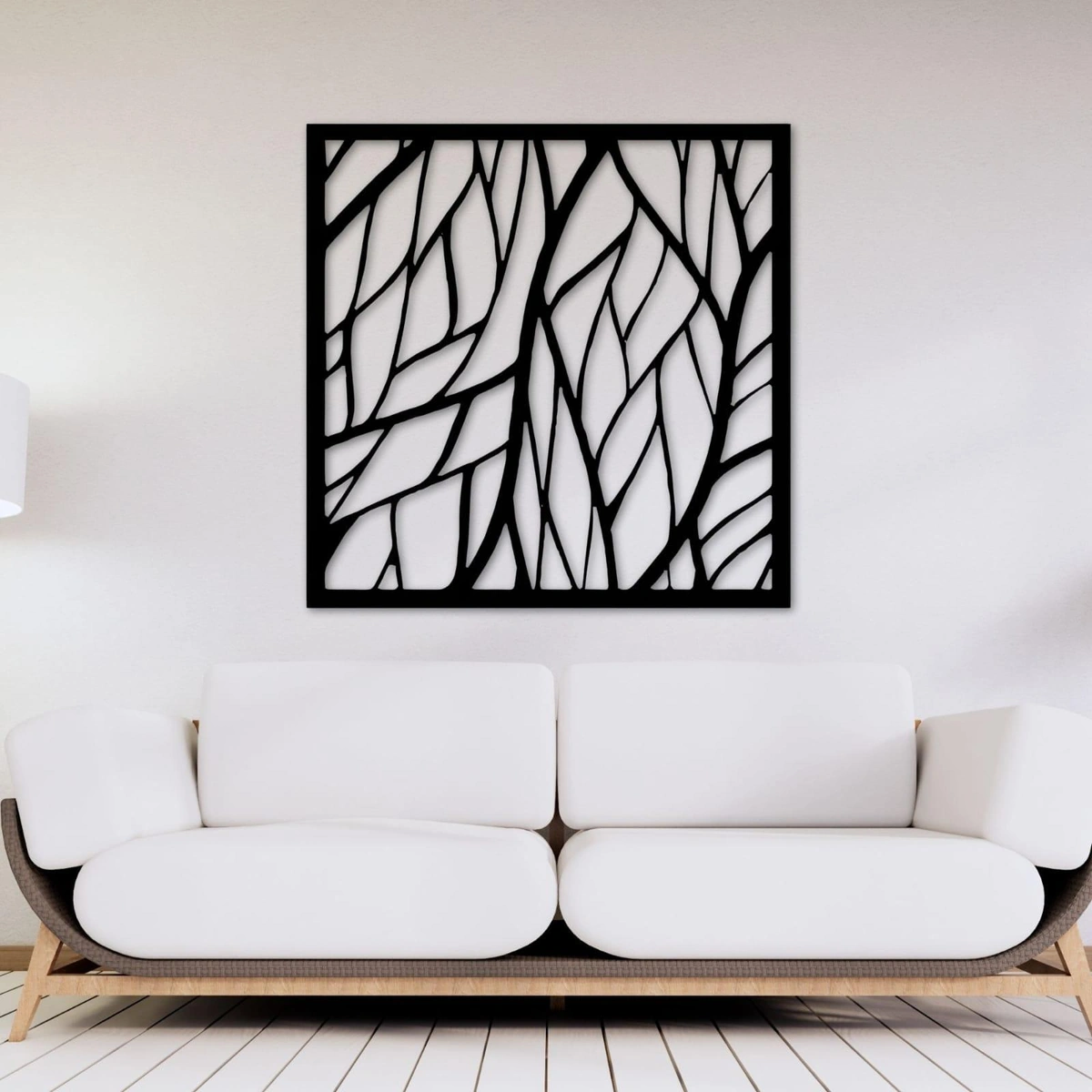 - التصميم: مربع مفرغ بنمط فروع مجردة مستوحاة من الطبيعة، مقطوعة بالليزر بدقة