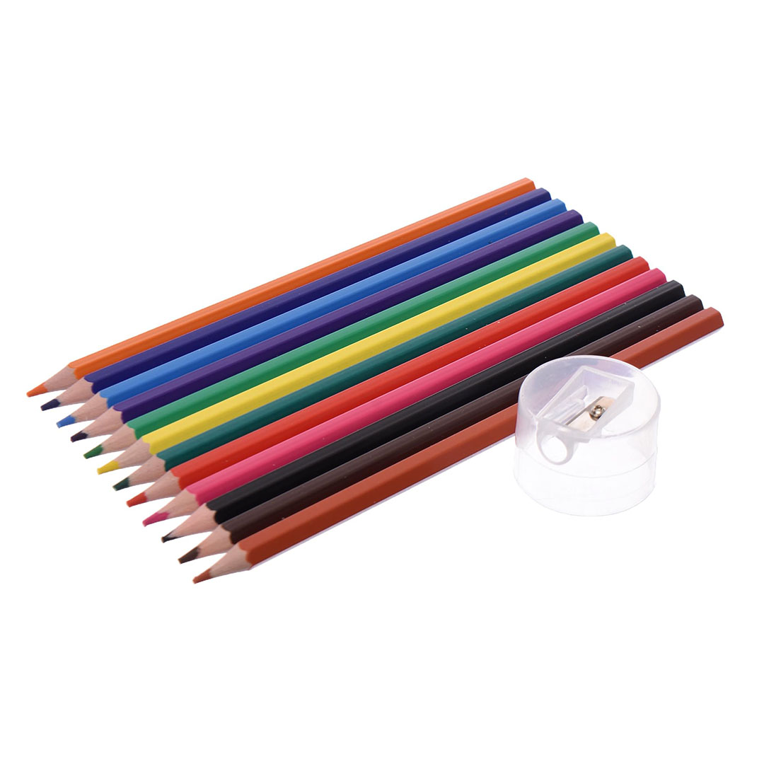 علبة الوان خشب 12 لون قصير و براية - AG-3512