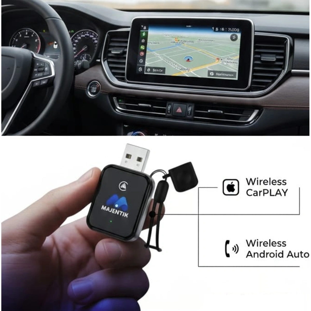 اكتشف محول كاربلاي لاسلكي للسيارة Majentik MCC-003 - أسود، الحل المثالي لعشاق التكنولوجيا والراحة أثناء القيادة في مصر! بفضل تصميمه العصري والأنيق، هتقدر توصل موبايلك بالسيارة بكل سهولة وبدون أسلاك مزعجة، وكأنك داخل عالم جديد من التكنولوجيا. المحول ده مش بس هيخليك تستخدم تطبيقاتك المفضلة زي خرائط جوجل والموسيقى بلمسة واحدة، لكن كمان هيوفرلك أمان أكبر على الطريق لأنك هتقدر تتحكم في كل حاجة من خلال شاشة العربية. مع محول كاربلاي Majentik، هتستمتع بتجربة قيادة مريحة وممتعة، كل دا بلون أسود أنيق يناسب أي ديكور داخلي. جربه النهاردة وخلي رحلتك أسهل وأمتع بكتير!