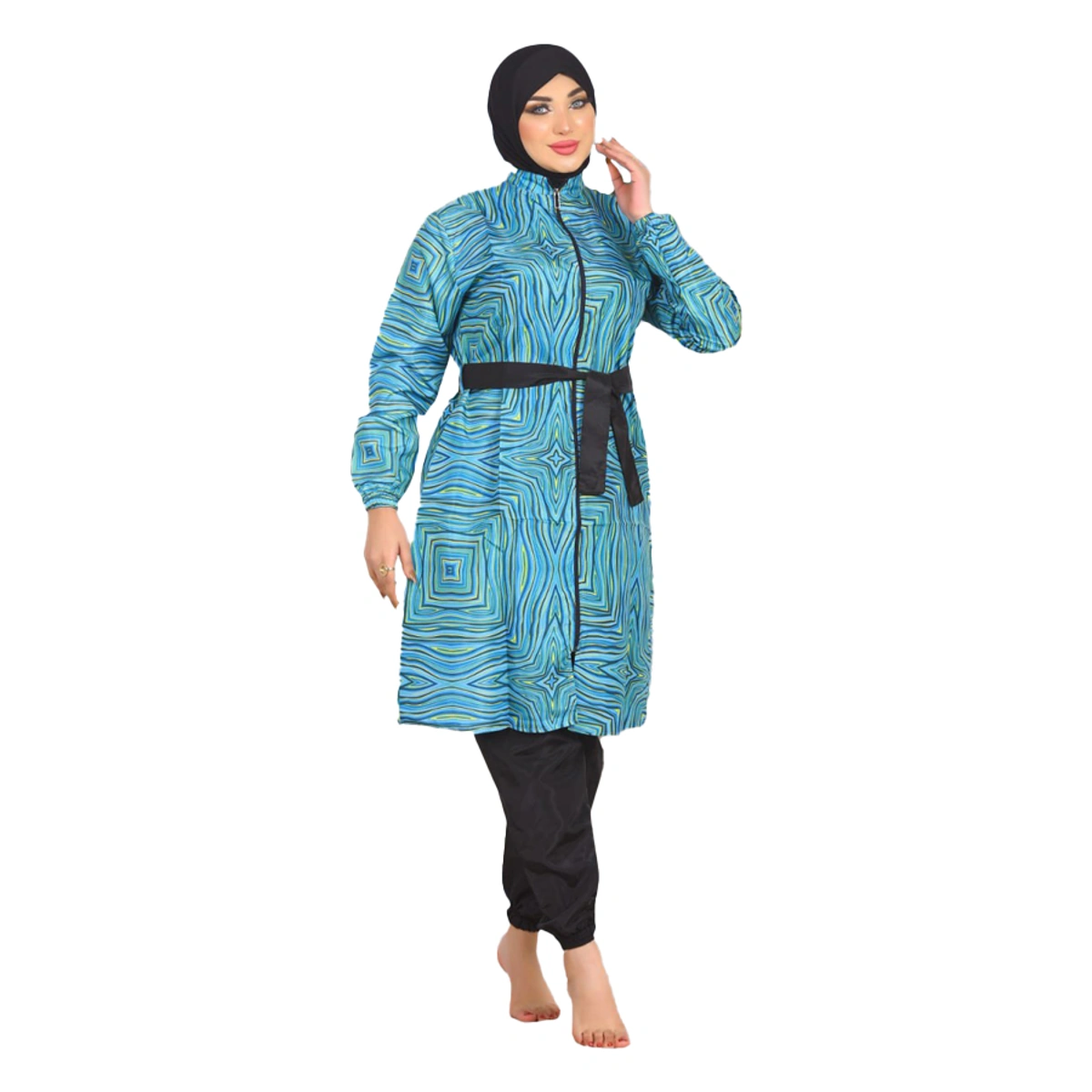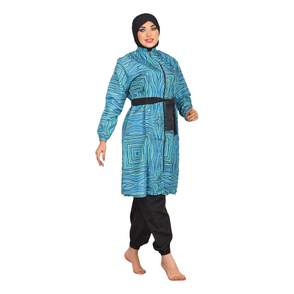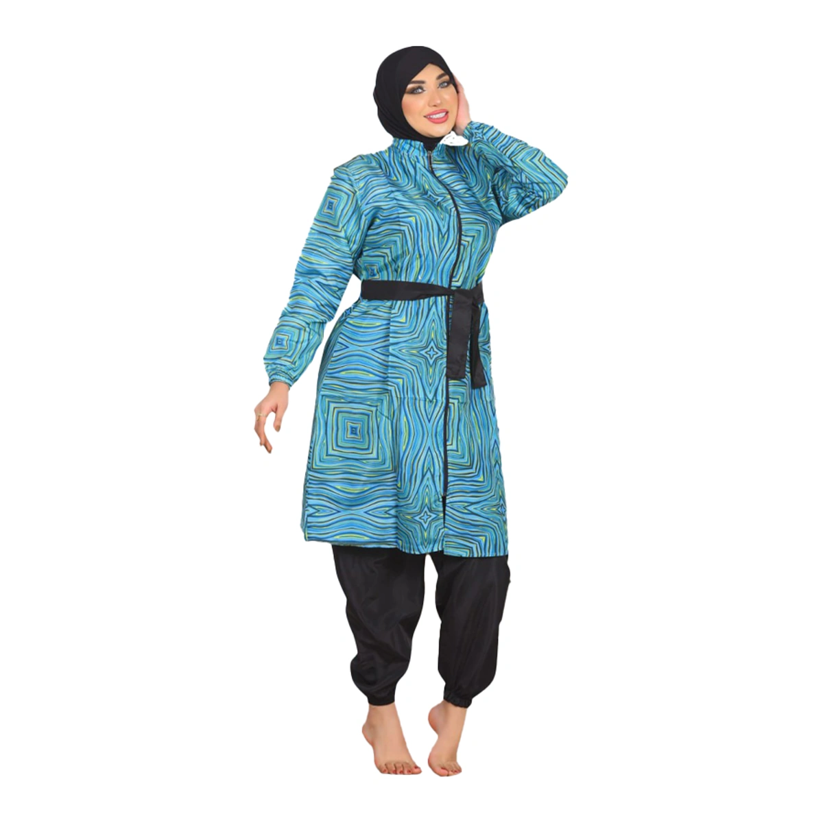 نوع المنتج: بوركيني إسلامي (4 قطع: تونيك، حزام، بنطلون، بونيه)