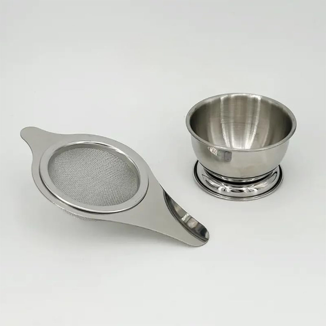 - مجموعة كاملة: تتضمن مصفاة شاي بمقبض مريح وسلة فلتر شبكية دقيقة وحامل وعاء تنقيط مطابق من الستانلس ستيل