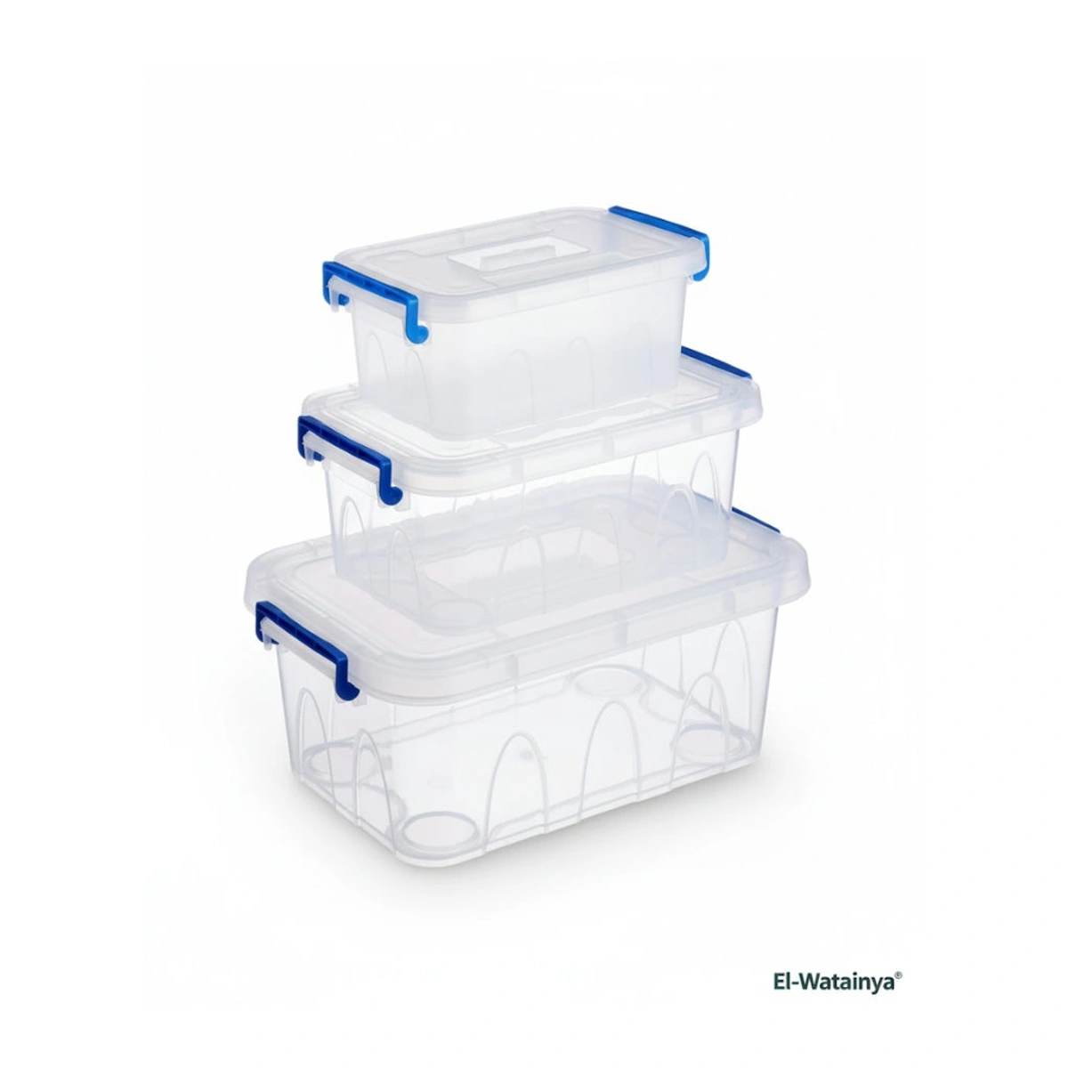 حافظ على طعامك طازجًا ومنظمًا مع طقم علب تخزين فريش من الوطنية المصنوع من البلاستيك عالي الجودة. مجموعة عملية من 3 قطع بسعات متنوعة (1.5، 3، 5 لتر) لتلبية كل احتياجات مطبخك.