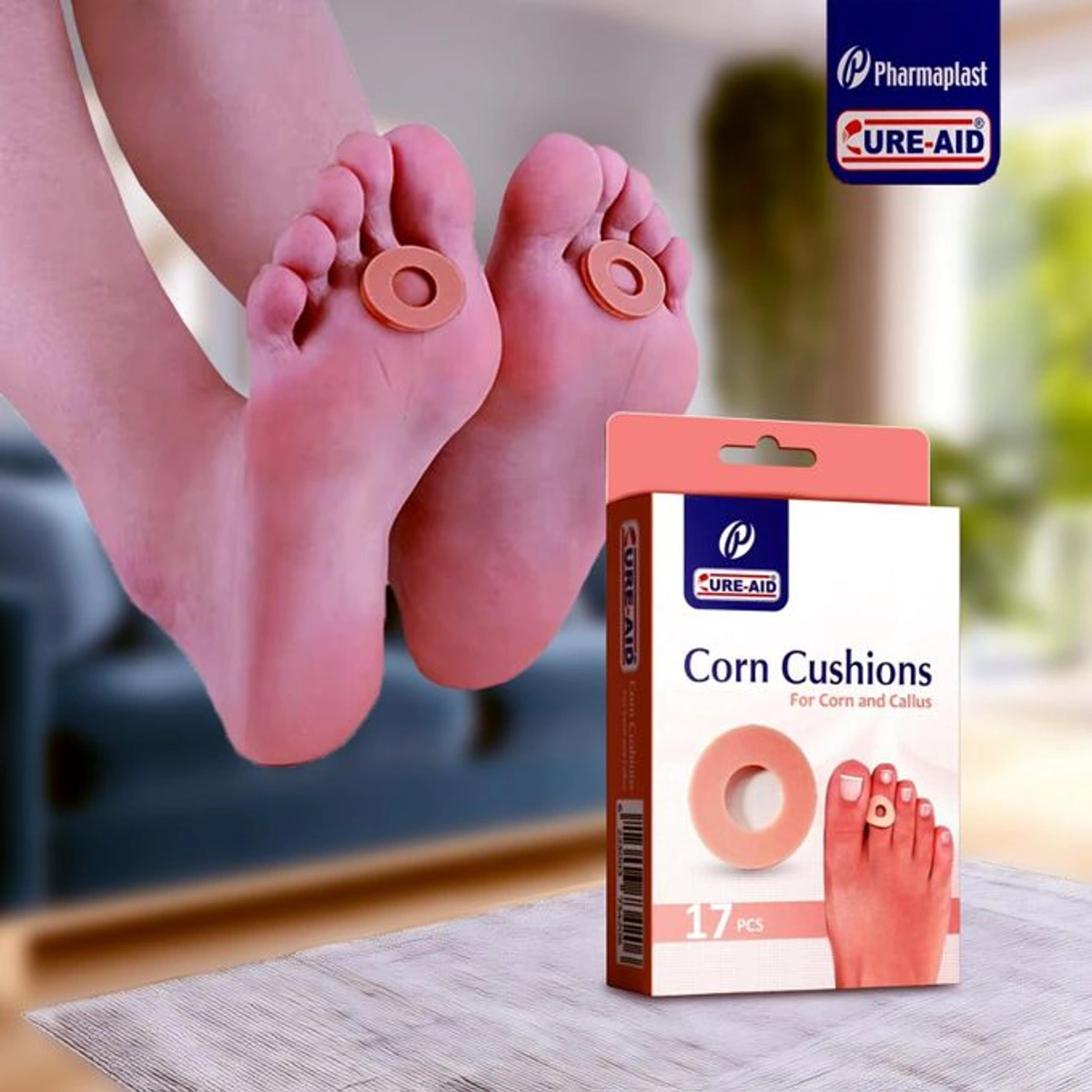 استمتع براحة فورية وحماية كاملة لقدميك مع وسائد كورن كيور-ايد المتنوعة. تعمل على تخفيف الألم الناتج عن مسامير القدم والزوائد الجلدية بفاعلية وتوفر حماية من الاحتكاك.