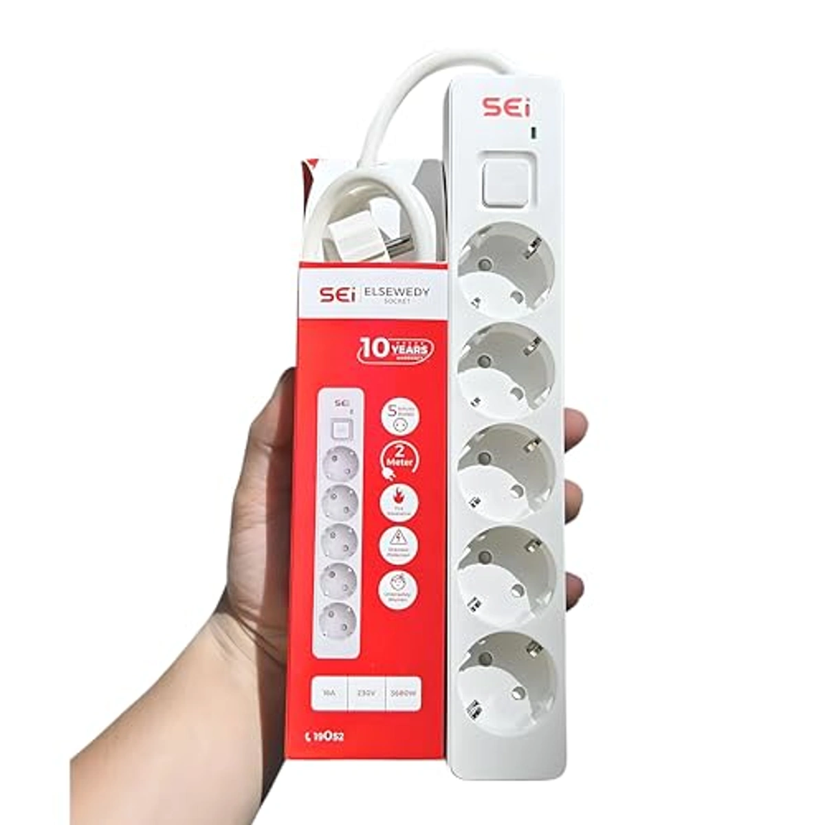 مشترك كهرباء السويدي 5 منافذ 2 متر أبيض يوفر توصيلًا عمليًا وآمنًا للأجهزة اليومية، ويأتي بعدد منافذ مناسب وكابل بطول 2 متر لسهولة الاستخدام في المنزل أو المكتب.