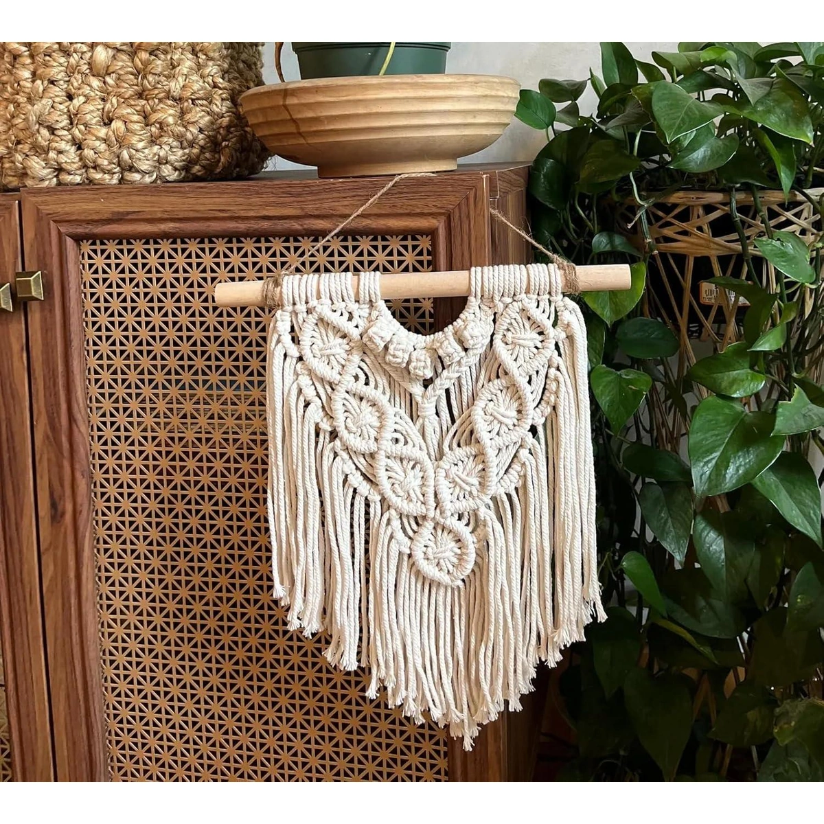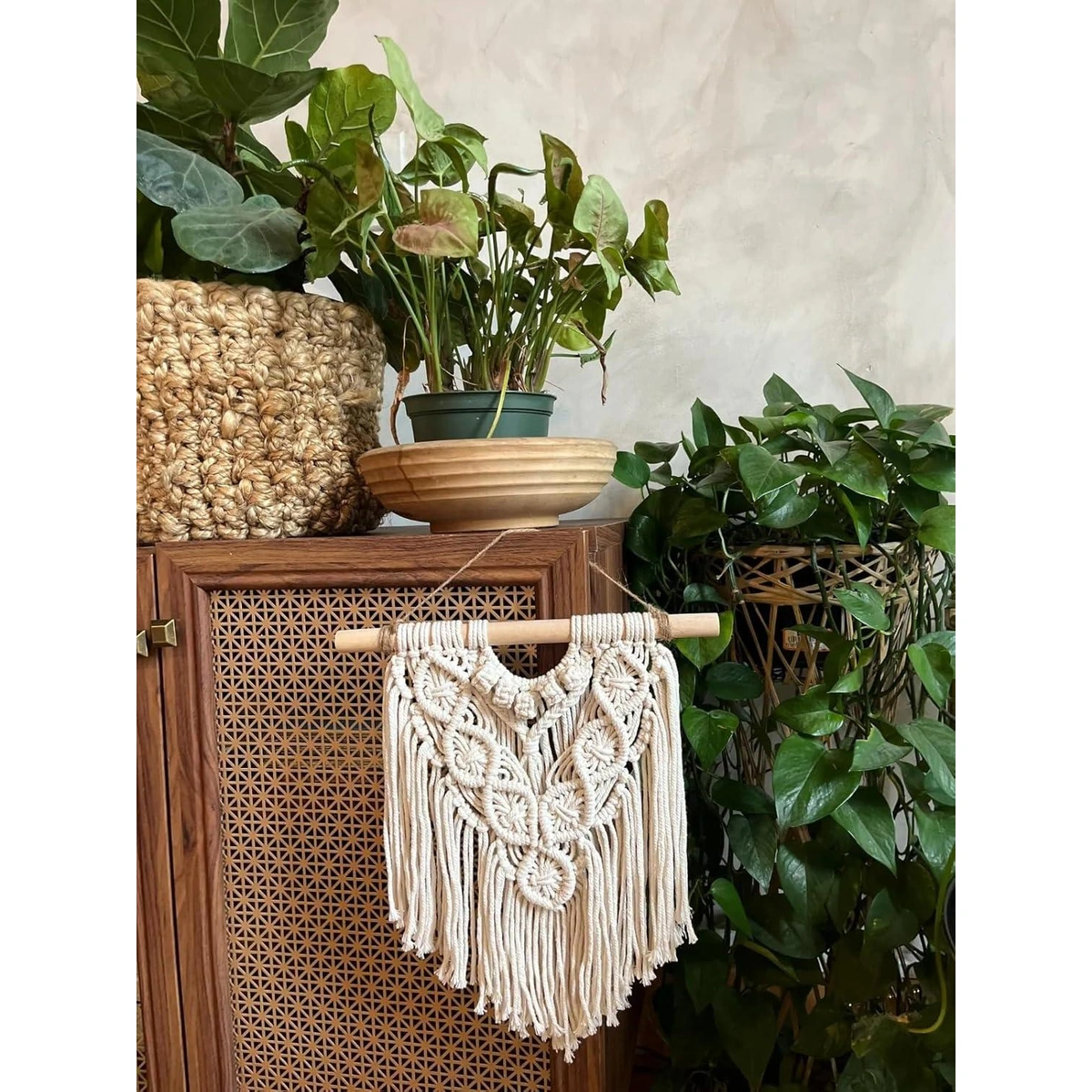 أضف لمسة بوهيمية ساحرة لديكور منزلك مع تعليقة حائط مكرمية ATM. تصميم يدوي فريد ولون بيج يتناغم مع أي مساحة، لتجربة جمالية مريحة.