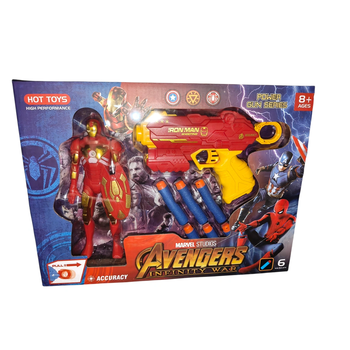 مسدس طلقات شخصية ايرون مان يضمن ساعات من المرح والإثارة لأبطالك الصغار. تصميم مستوحى من البطل الخارق لخوض مغامرات لا تنتهي.