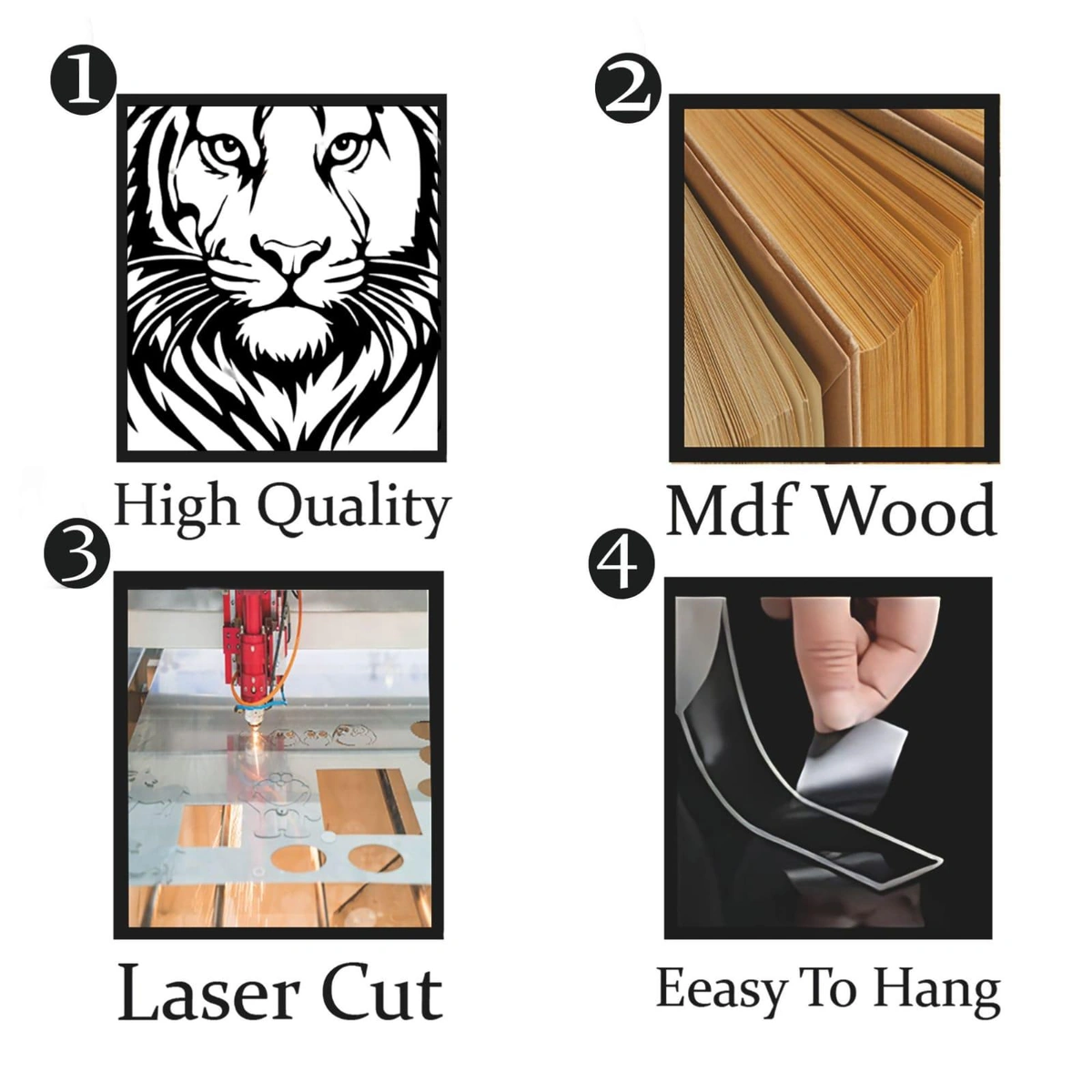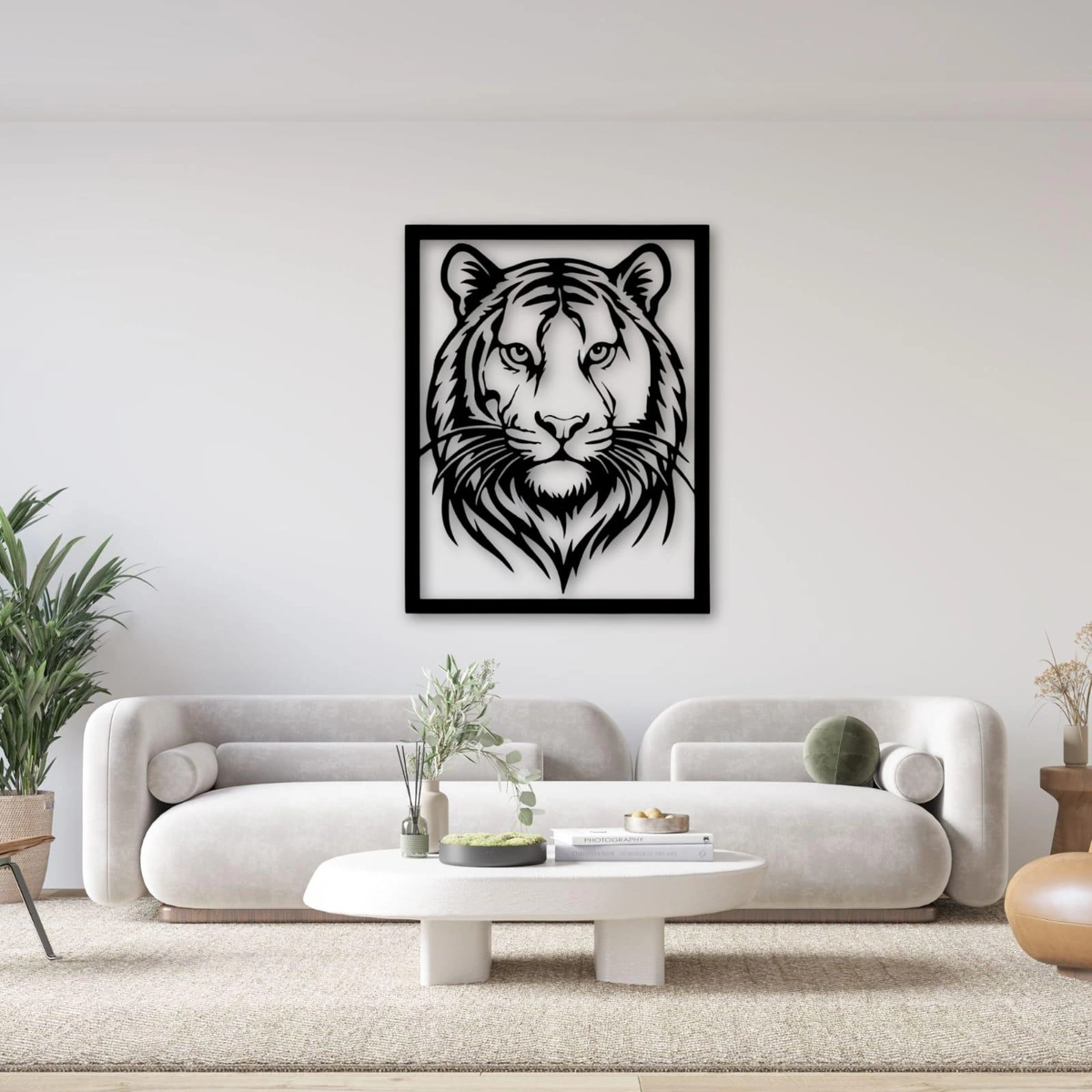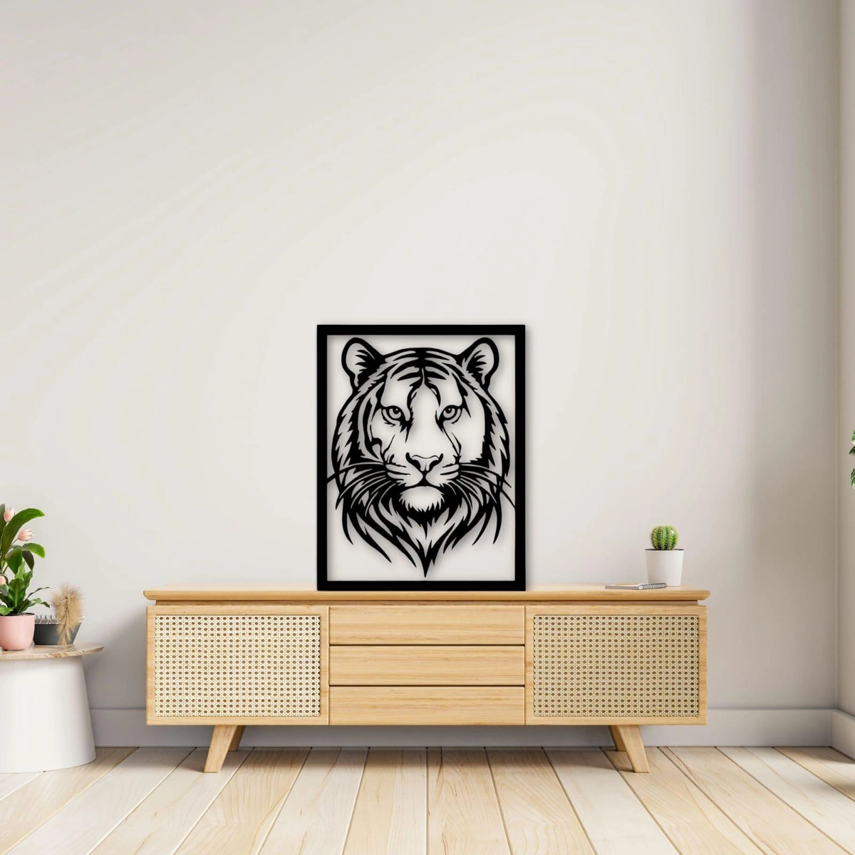 لوحة حائط رأس نمر خشب MDF - أسود - 30*28 سم - Tiger-8