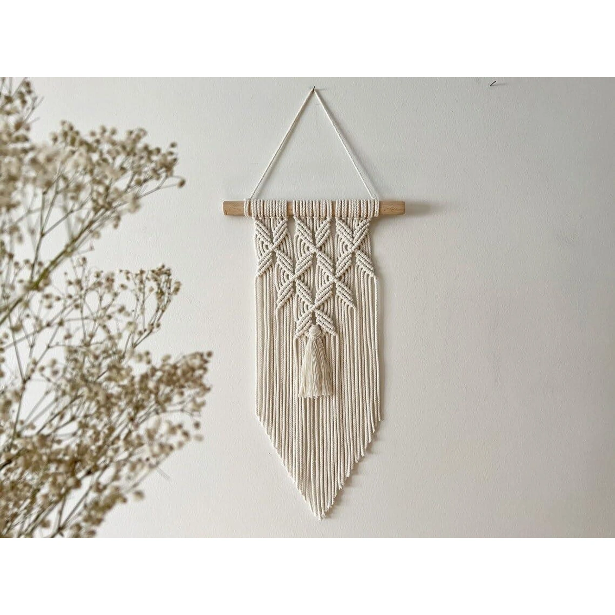 تعليقة حائط مكرمية - أبيض - 51*23 سم