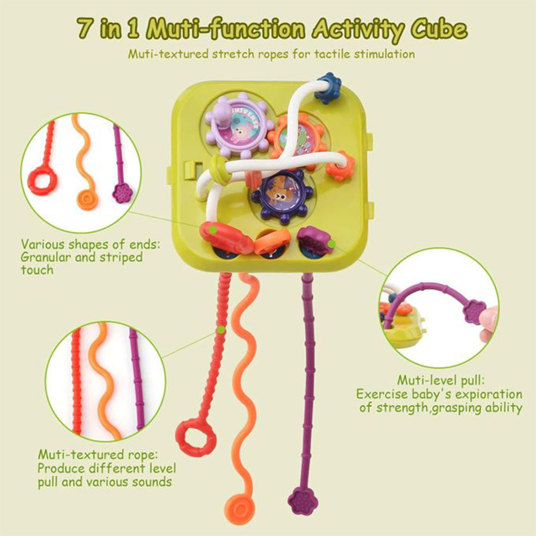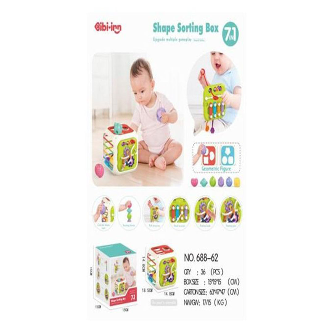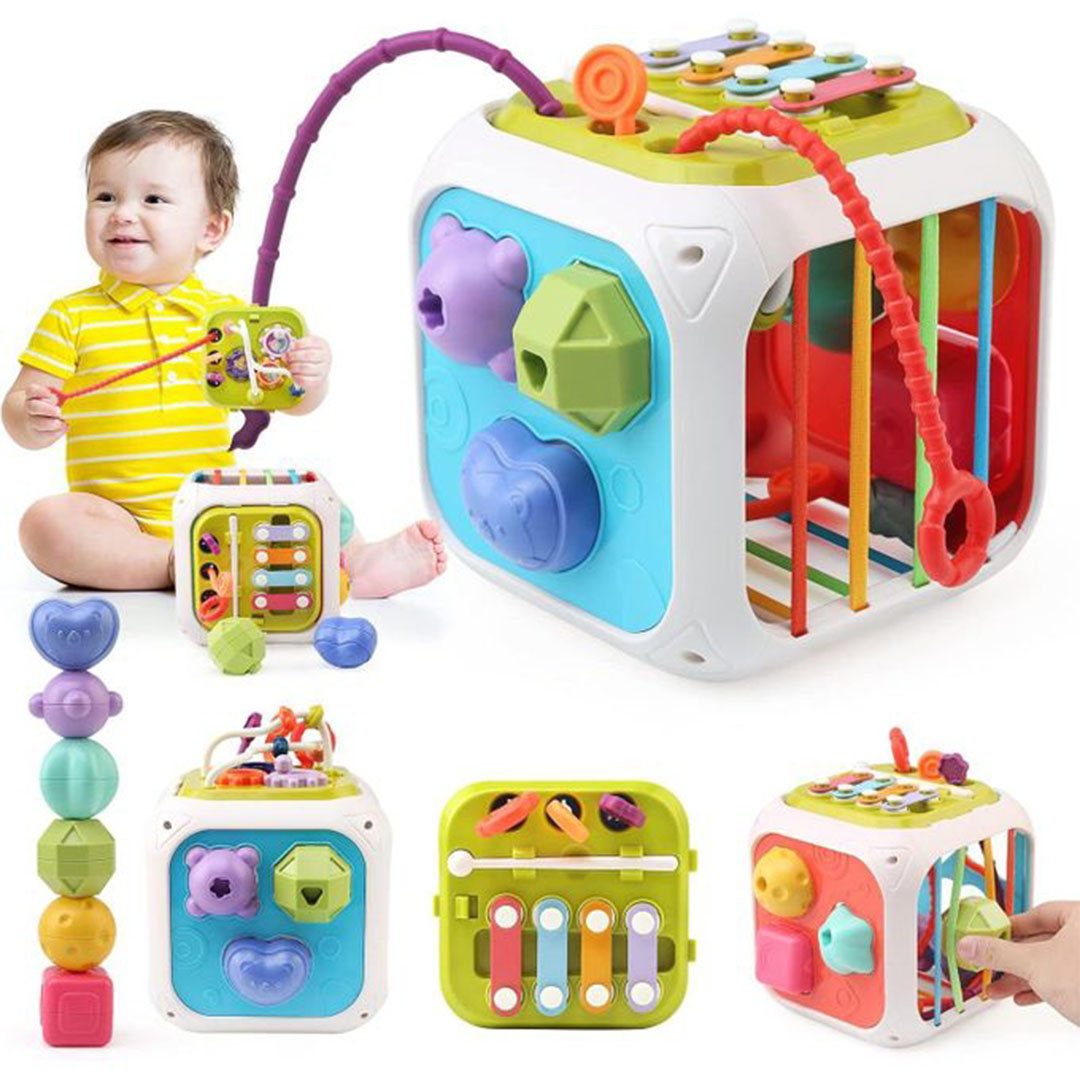 قدّمي لطفلك تجربة لعب تعليمية شاملة مع مكعب الأنشطة 7 في 1 لفرز الأشكال، المصمّم لتنمية المهارات الحركية والعقلية بطريقة ممتعة وآمنة. يجمع المكعب بين عدة ألعاب تفاعلية تساعد الطفل على التعلّم من خلال اللمس، الحركة، والتجربة