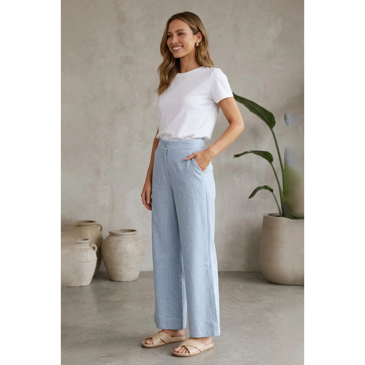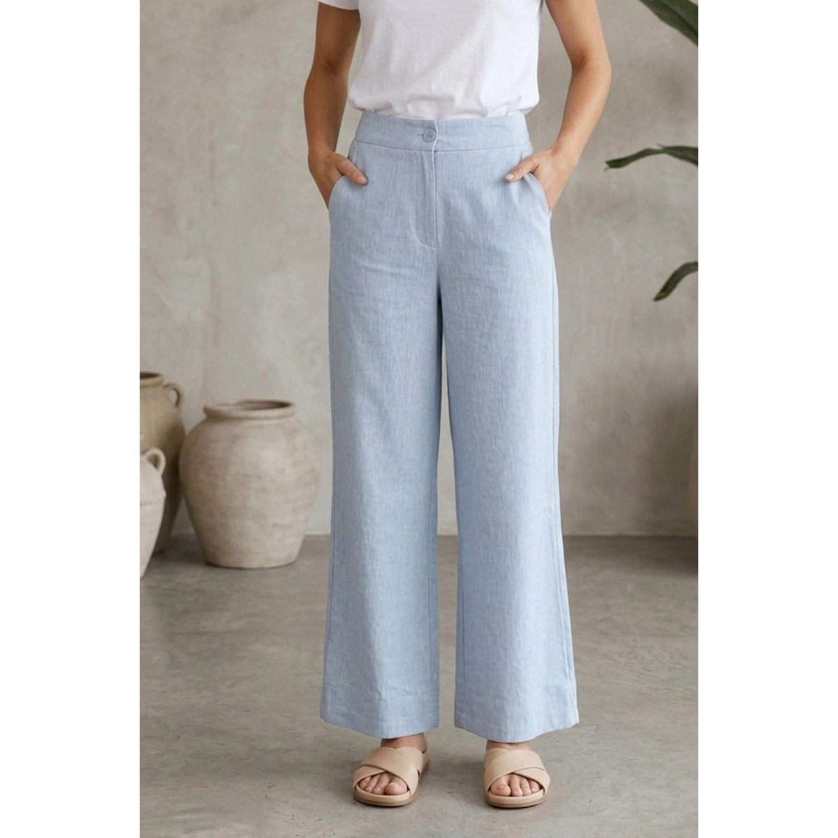 بنطلون كتان واسع الساق حريمي b25