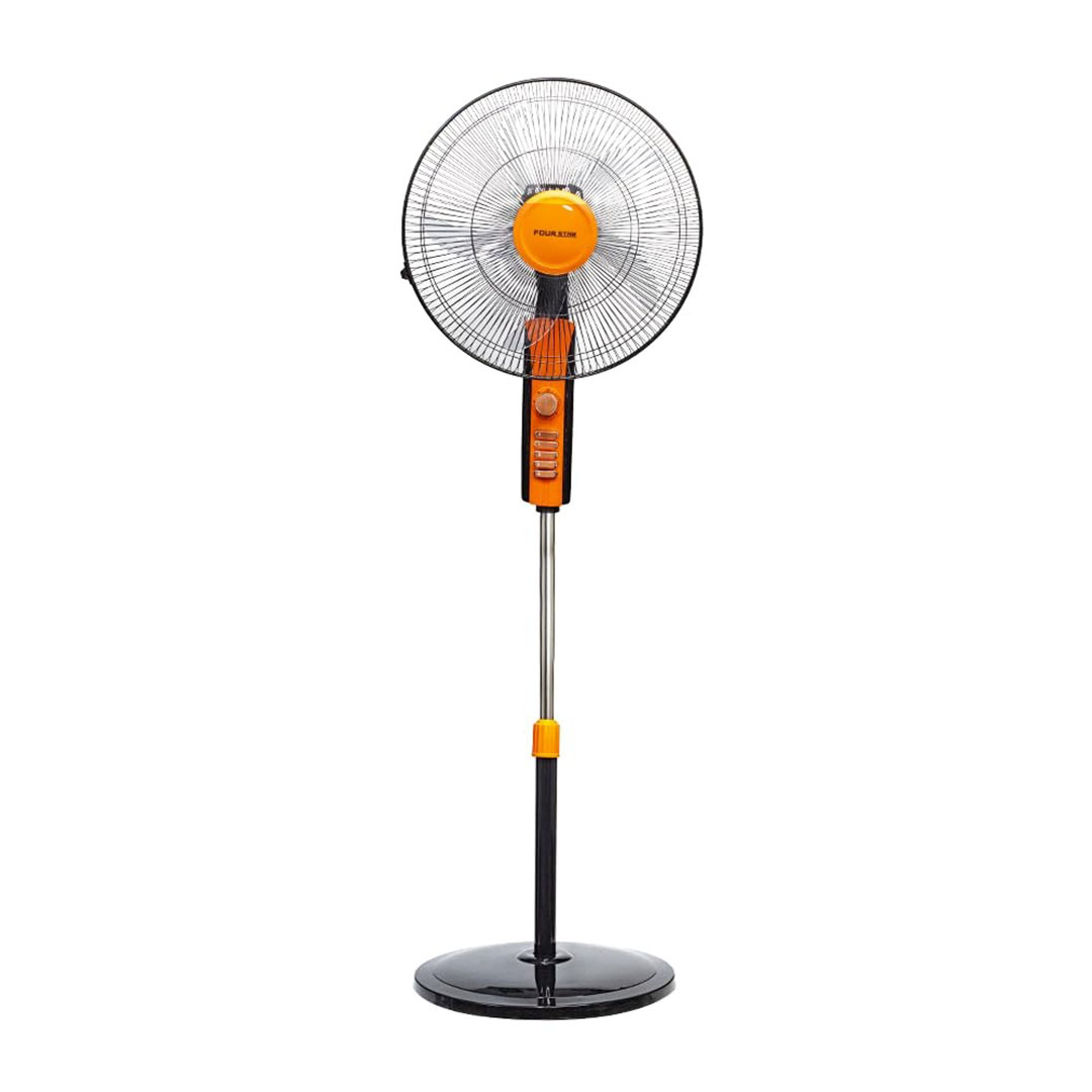 مروحة ستاند قوية بقياس 18 بوصة، بتشتغل بـ 4 سرعات مختلفة علشان تختار الراحة اللي تناسبك، بتيجي بلون أسود/برتقالي عصري وتصميم ثابت وقوي، بتوزع الهواء بكفاءة في كل أرجاء الغرفة، وارتفاعها قابل للتعديل لتناسب كل الاستخدامات سواء في البيت أو المكتب