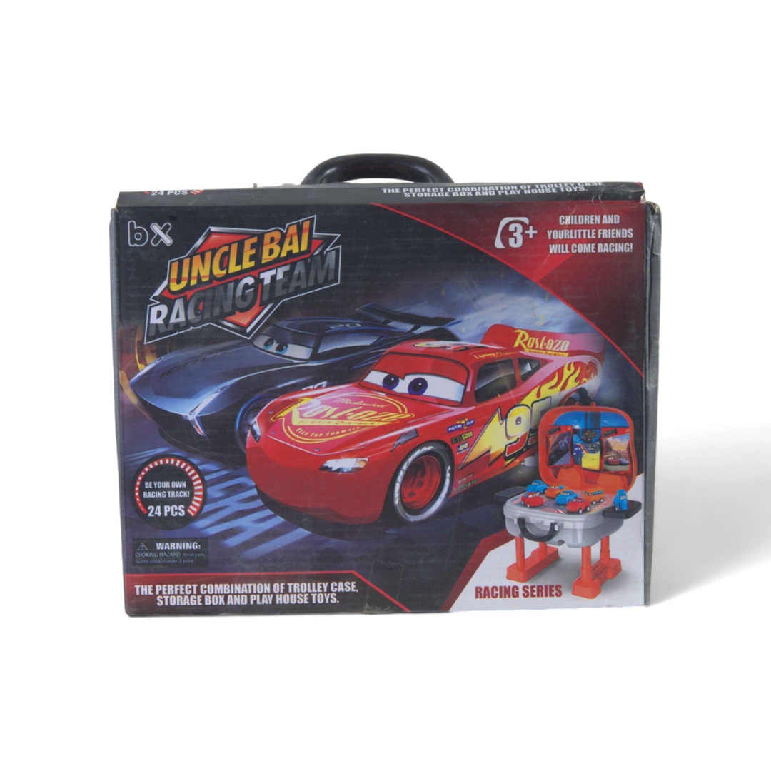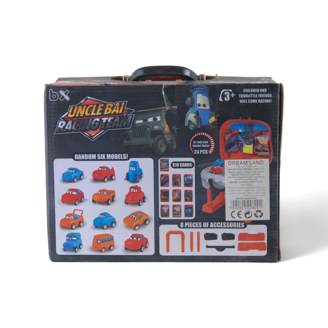 تشتمل هذه الحقيبة على ملصقات وإكسسوارات أخرى وبطاقات و6 نماذج عشوائية للسيارات مشرقة وحيوية ومستقلة. مجموعة السباق هذه معبأة في حقيبة رائعة وفريدة من نوعها ومناسبة جدًا للتخزين والسفر وكصندوق هدايا.