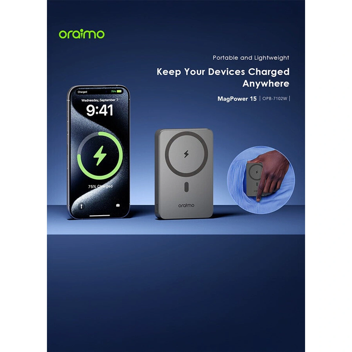 اكتشف بنك طاقة أورايمو MagPower 15 بسعة 10000 مللي أمبير بلون أسود، الحل المثالي لاحتياجاتك من الطاقة أثناء التنقل. يتميز هذا الباور بنك بتصميمه الأنيق والمحترف، مما يجعله رفيقك المثالي في السفر، العمل، أو أثناء التنزه. بفضل سعة 10000 مللي أمبير، يمكنك شحن أجهزتك الذكية مثل الهواتف والأجهزة اللوحية بسهولة وسرعة. كما يدعم بنك طاقة أورايمو تقنيات الشحن السريع، مما يوفر لك الطاقة في وقت قياسي. لا تفوت فرصة الحصول على هذا المنتج الرائع الذي يجمع بين الأداء العالي والتصميم العصري.