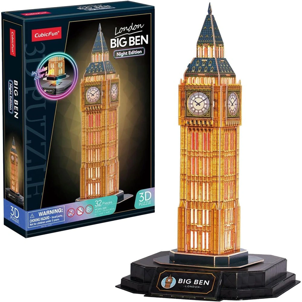استمتع بإعادة بناء واحدة من أشهر المعالم في العالم مع بازل ساعة بيغ بن ثلاثي الأبعاد مضيء من ماركة Cubic Fun. يتضمن هذا البازل المكون من 32 قطعة، المصنوع من الكرتون القوي، تجربة تركيب ممتعة تناسب الأطفال من عمر 8 إلى 14 عامًا. ليس فقط أنه يساعد على تنمية التركيز والمهارات اليدوية، بل يضيف أيضًا لمسة سحرية لمنزلك بفضل إضاءة الساعة بعد الانتهاء من التركيب. استعد لتجربة تعليمية وترفيهية مميزة مع هذا المنتج الرائع!