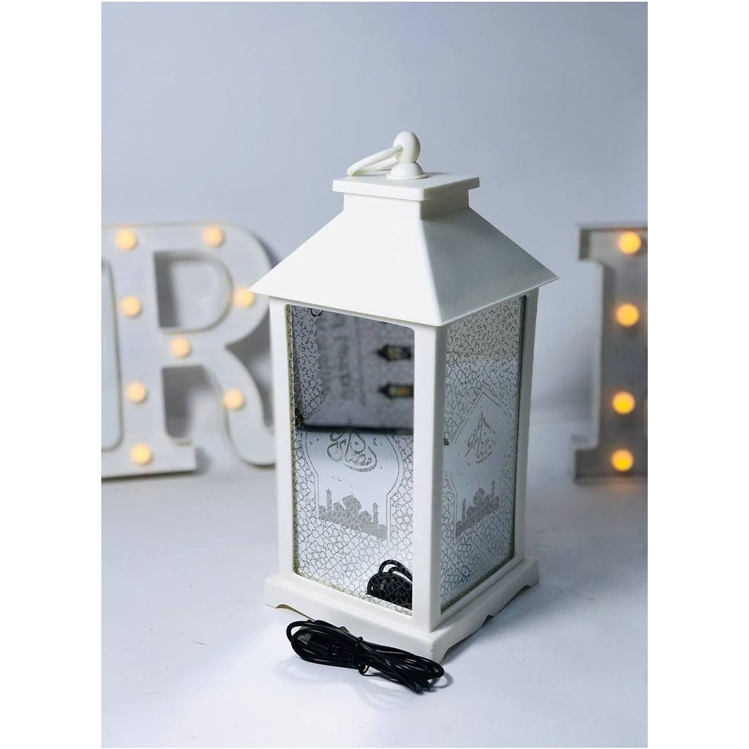 فانوس أكريليك بزجاج رمضان كريم بإضاءة LED وأغاني رمضان