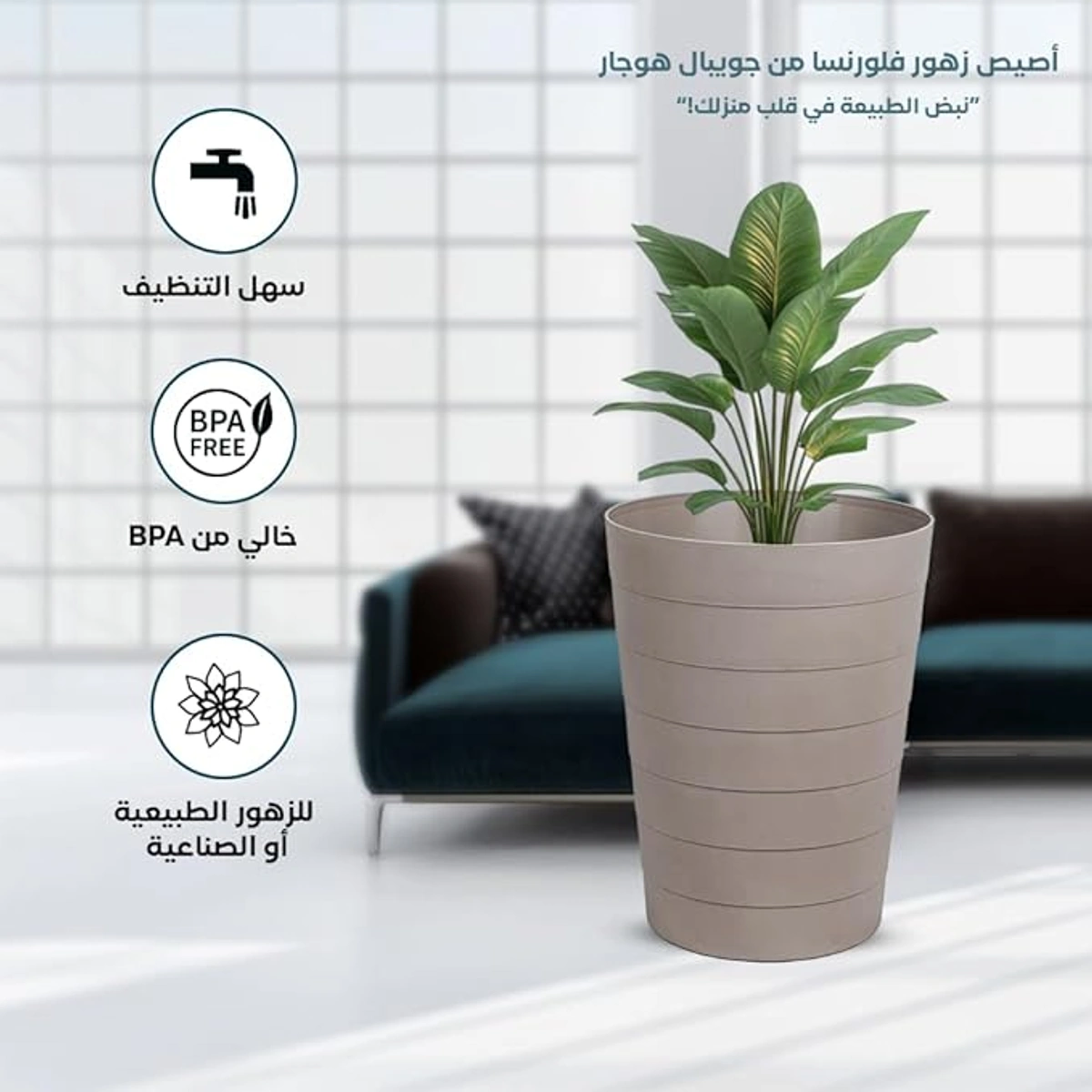 قصرية زرع فلورنسا مناسب لترتيب النباتات وإضافة لمسة بسيطة للمكان. خفيف وعملي ومناسب للاستخدام داخل البيت أو البلكونة.