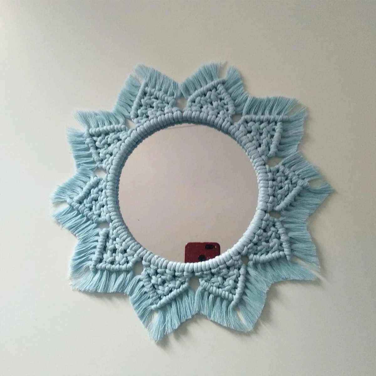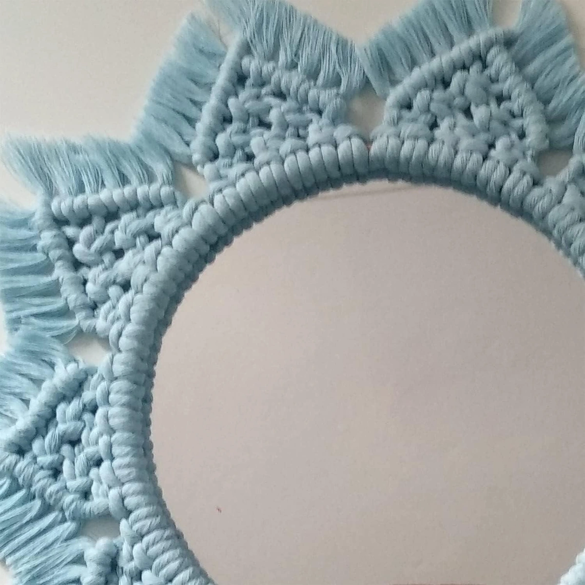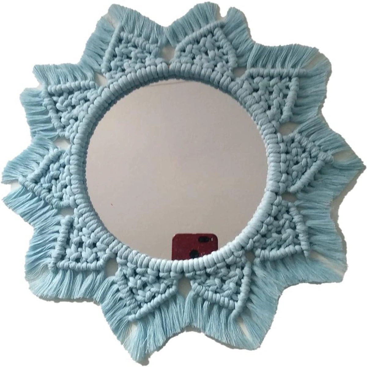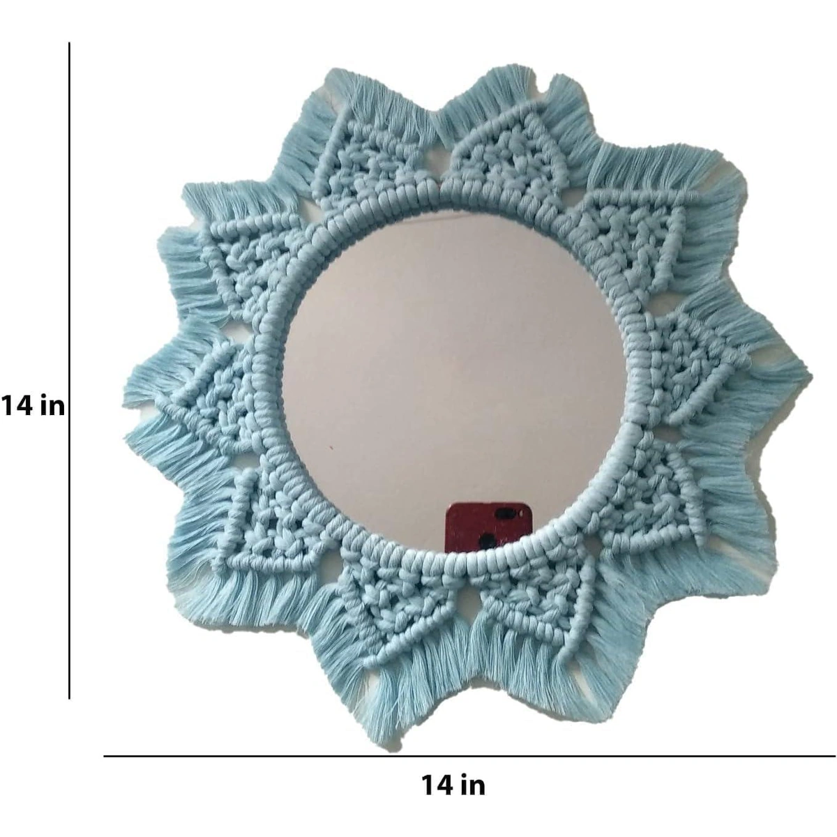 مرآة حائط مكرمية مصنوعة يدويًا - أزرق - 14 بوصة