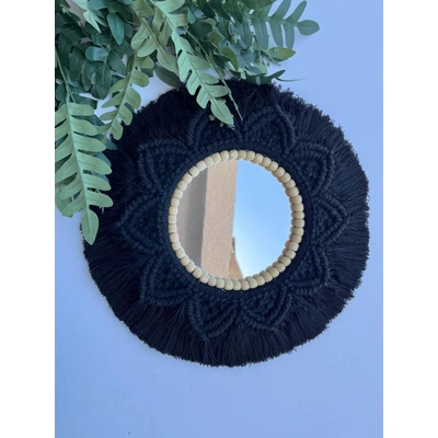 مرآة حائط مكرمية مصنوعة يدويًا - أسود - 35 سم