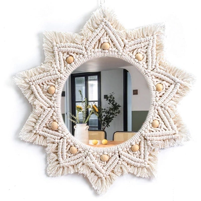 مرآة ديكور حائط بوهيمية - أبيض - 45*25 سم