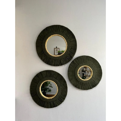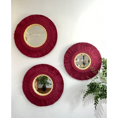 مجموعة مرايا حائط دائرية قطنية - أحمر عنابي - 3 قطع