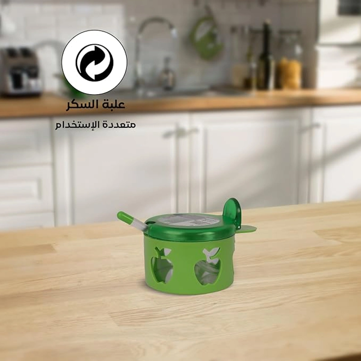 سكرية بلاستيك بمعلقة - أخضر - 9.5 سم