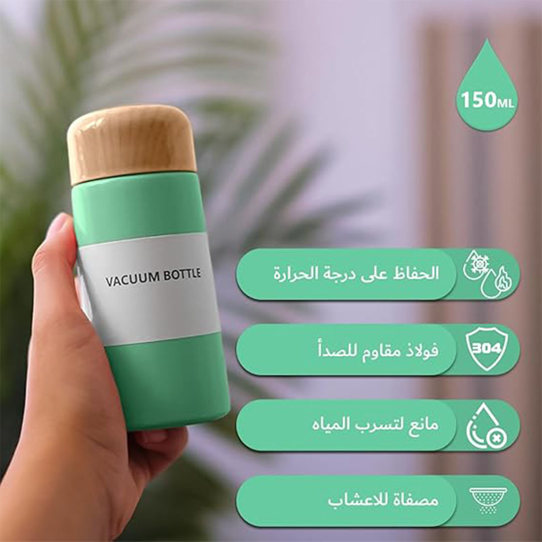 استمتع بمشروباتك المفضلة في أي وقت وأي مكان مع المج الحراري الأنيق، مصمم خصيصًا للمشروبات الساخنة والباردة. هذا المج الحراري بسعة 150 مل ولون أخضر جذاب يحافظ على درجة حرارة مشروبك لساعات طويلة، سواء كان قهوة ساخنة أو عصير منعش. مثالي للاستخدام اليومي، في العمل، أو أثناء التنقل، يضمن لك هذا المج الحراري الاستمتاع بمشروبك المفضل في أفضل حالاته. احصل على مجك الحراري الآن واستمتع بتجربة فريدة!