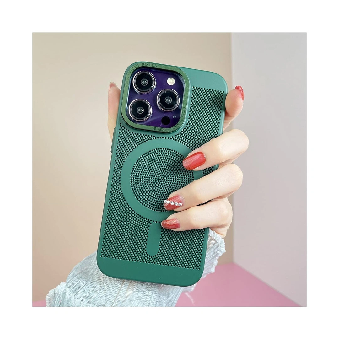 جراب موبايل آيفون 12 برو ماكس باللون أخضر مصنوع من المعدن القوي لحماية لحماية قصوى لموبايلك الأيفون مع سهولة في الشحن اللاسلكي