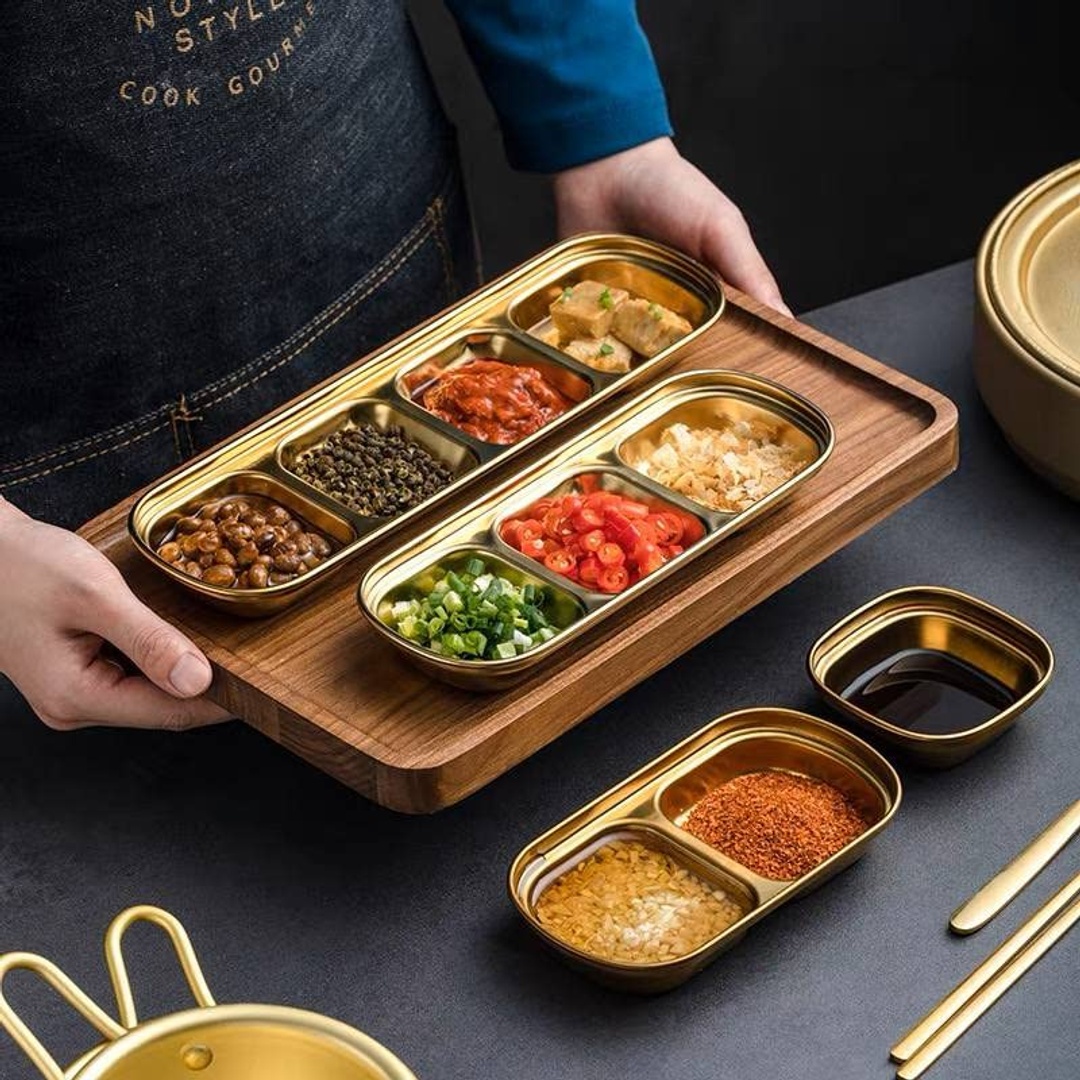 اكتشف منظم الصلصة بثلاثة أقسام المصنوع من الستانليس ستيل المقاوم للصدأ، الذي يجمع بين الأناقة والوظائف العملية. هذا المنتج المثالي مناسب لتقديم مجموعة متنوعة من الصوصات والصلصات، مما يجعله إضافة رائعة لأي مائدة أو مناسبة. بتصميمه الفريد بلون ذهبي لامع، يضيف لمسة من الفخامة لأي حفلة أو تجمع عائلي، ويضمن لك تنظيم الصلصات بطريقة سهلة ومرتبة. لا تفوت فرصة اقتناء منظم الصلصة هذا لتعزيز تجربة تناول الطعام وجعل كل وجبة مميزة!