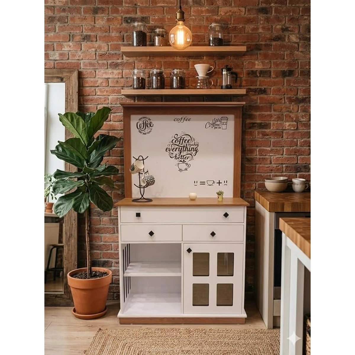 أضف لمسة أناقة ووظيفة لمطبخك أو غرفة معيشتك مع ركن القهوة العصري من Home Art. يتميز بتصميم بلونين أبيض وبني، وخامات MDF عالية الجودة مع مساحات تخزين متعددة لتنظيم مثالي.