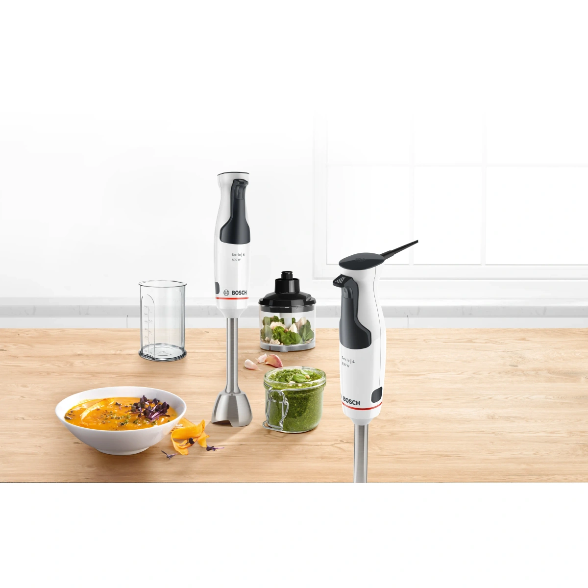 اكتشف خلاط يدوي ارجو ماستر MSM4W420 من بوش، الماركة الرائدة في عالم الأجهزة المنزلية. يمتاز هذا الخلاط بتصميمه الأنيق بلون أبيض جذاب، وأبعاد مثالية (385x57x78 مم) تجعله مناسبًا لكل مطبخ. بقوة 800 واط، يضمن لك أداءً قويًا وسريعًا، ويأتي مع ضمان لمدة سنتين مما يعكس جودة المنتج. يتميز MSM4W420 بشفرات معدنية رباعية تضمن لك خلطًا مثاليًا للمكونات، بالإضافة إلى سهولة الاستخدام بفضل إعدادات التحكم المتعددة. مع وزن خفيف يبلغ 0.9 كجم وسلك كهربائي بطول 140 سم، يمكنك استخدامه بكل سهولة وراحة. كما أنه يأتي مع ملحقات إضافية تشمل كأس قياس و wand خلط من الفولاذ المقاوم للصدأ ومفرمة عالمية، مما يجعله الخيار الأمثل لمساعدتك في تحضير أشهى الأطباق. جميع المواد البلاستيكية التي تلامس الطعام خالية من BPA، مما يضمن لك سلامة وصحة عائلتك. اختر بوش MSM4W420 لتجربة طهي مريحة وممتعة!