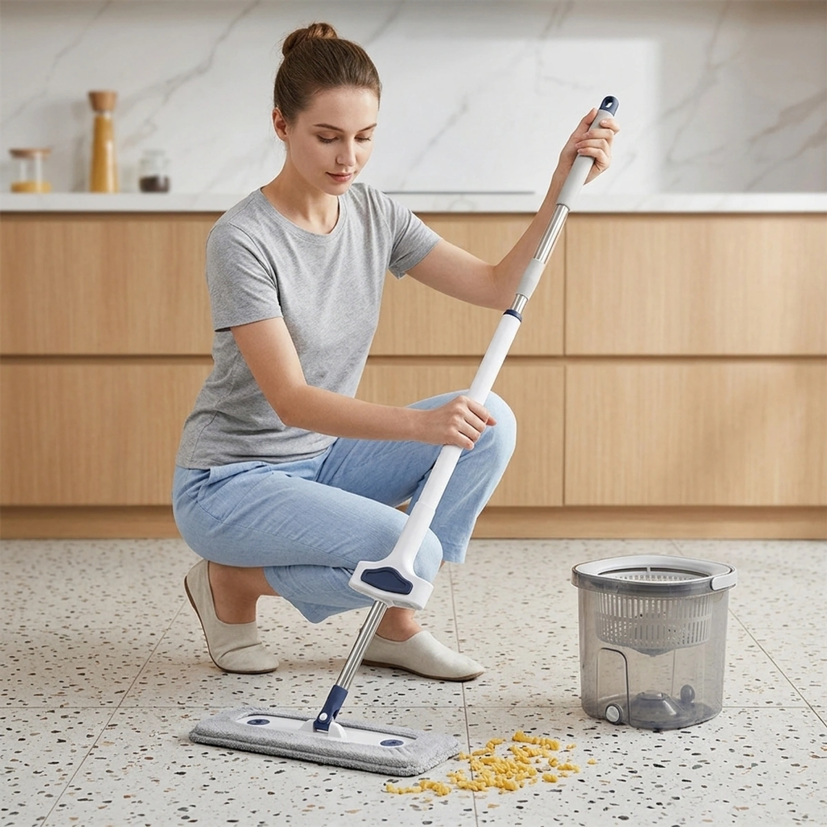 يا سلام على النضافة السهلة والسريعة! مع ممسحة أرضيات Group Tiger المسطحة ذاتية العصر، مش هتحتاج تلمس الماية المتسخة تاني. تصميمها الذكي ورأسها اللي بيلف 360 درجة هيخلي التنضيف أسهل وأمتع بكتير! وداعاً للمجهود ومرحباً باللمعان!