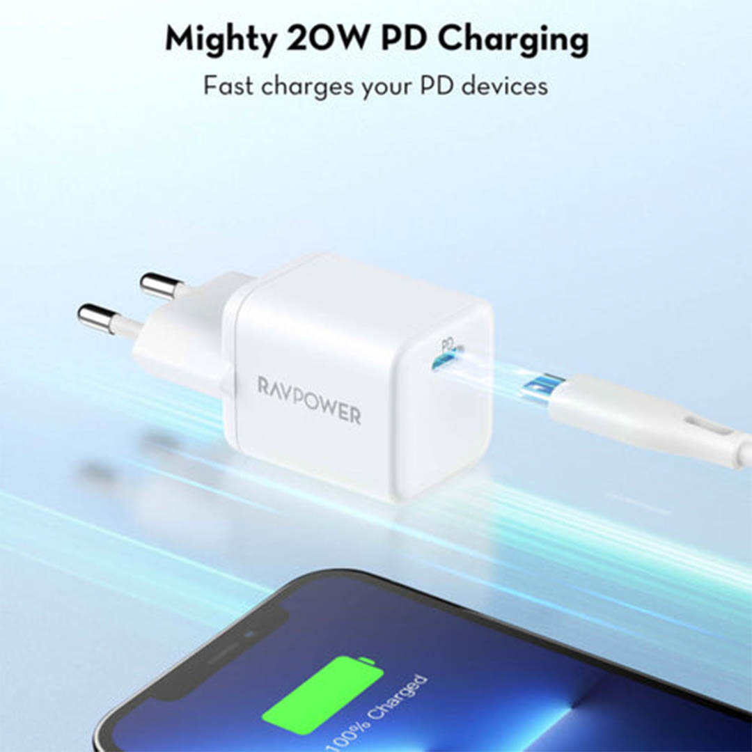 محول طاقة USB-C - 20 وات - أبيض