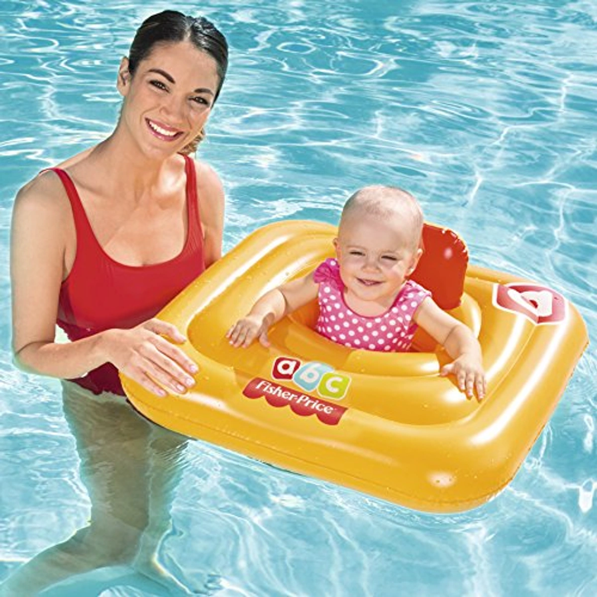 ابدأ مغامرة طفلك في السباحة بأمان ومتعة مع عوامة بيست واي فيشر برايس بمقعد للأطفال، تصميم مريح ومستقر بأبعاد 69×69 سم.