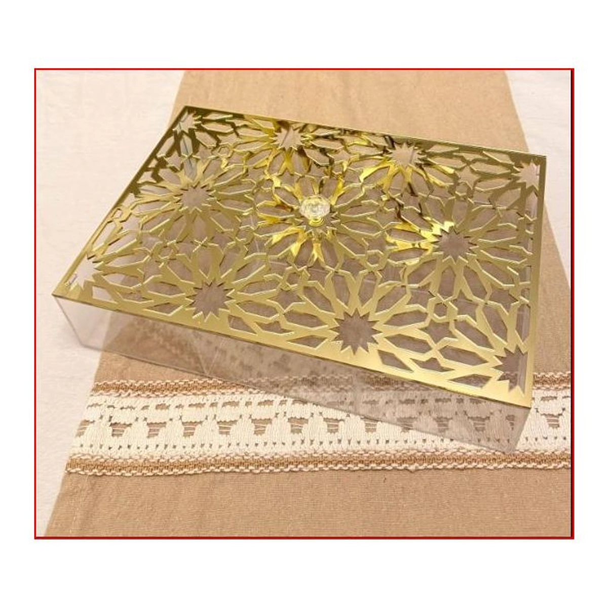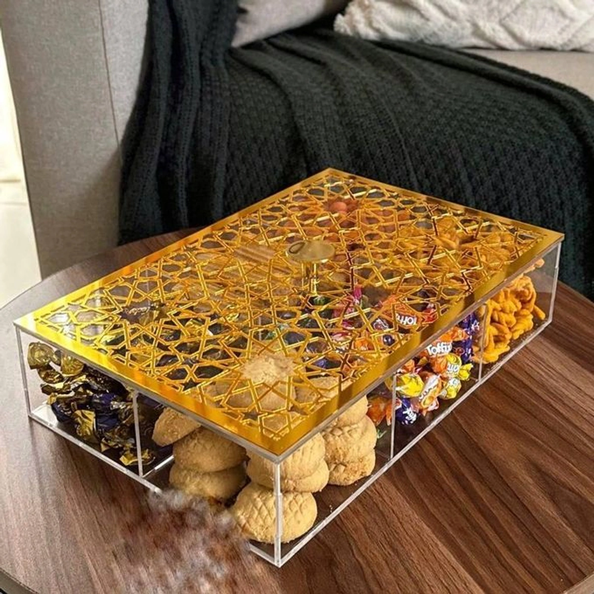 اكتشف جمال تنظيم الحلويات مع صندوق أكريليك للبسكويت والكعك الرائع، اللي بيجي مع غطاء مزخرف بزخرفة الأرابيسك الفريدة. التصميم الفاخر للغطاء يضيف لمسة من الأناقة على أي طاولة، بينما يتيح لك الصندوق بتقسيم الحلويات إلى 6 أقسام مريحة لسهولة الوصول إليها. اللون الذهبي اللامع يخلي الصندوق يبرز كقطعة فنية في مطبخك أو في أي مناسبة، سواء كانت حفلة أو تجمع عائلي. الخامة الأكريليك مش بس بتضمن لك متانة الصندوق، لكن كمان بتحافظ على نظافته وسهولة تنظيفه بعد الاستخدام. دلوقتي، مع صندوق أكريليك للبسكويت والكعك، تقدر تحتفظ بحلوياتك بشكل أنيق وتضفي لمسة مميزة على تقديمها، وده هيعجب ضيوفك ويدل على ذوقك العالي في اختيار التفاصيل.