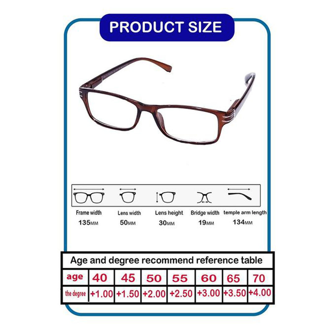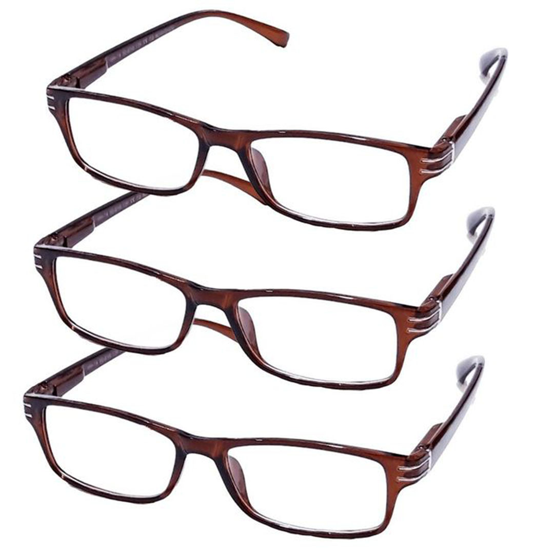 نظارات قراءة للجنسين - 3 قطع - مقاس 1 - بني