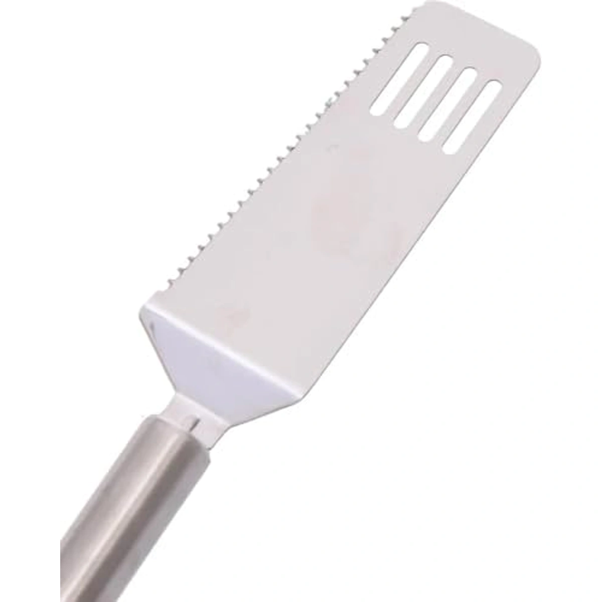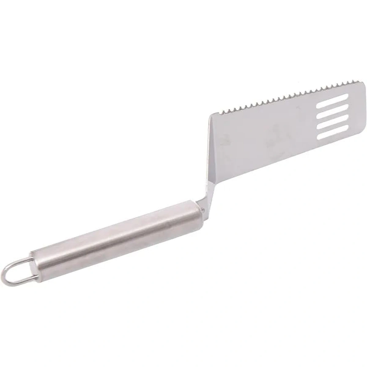 تُعتبر أداة تقديم الكيك المصنوعة من الستانلس ستيل الخيار المثالي لعشاق الحلويات، حيث تجمع بين التصميم الأنيق والعملية المتفوقة. تأتي هذه الأداة بلون فضي جذاب، مما يضيف لمسة من الفخامة إلى طاولتك عند تقديم الكعك. بطول نصل يبلغ 10 سنتيمترات، تتميز حافة الشفرة المسننة بقدرتها على قطع الكيك بسهولة ودقة، مما يجعل عملية التقديم أسهل وأكثر احترافية. تم تصميم المقبض من الستانلس ستيل ليوفر قبضة مريحة ومستقرة، مما يسهل استخدامها في المناسبات المختلفة. ورغم أنه لا يمكن غسلها في غسالة الأطباق، إلا أن تنظيفها اليدوي سيكون سريعاً وسهلاً، مما يضمن لك دائماً أدوات تقديم تظل في حالة ممتازة. اختر هذه الأداة كمساعدتك المثالية لتقديم الكيك في كل المناسبات!