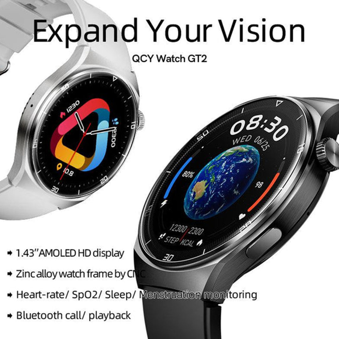 مميزات ومواصفات ساعة Qcy Gt2 بشاشة 1.43 بوصة المويد - فضي