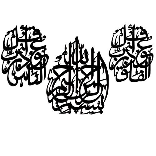 لوحة جدارية خشبية - اسلامي مفرغ يدويا - اسود - 3 قطع