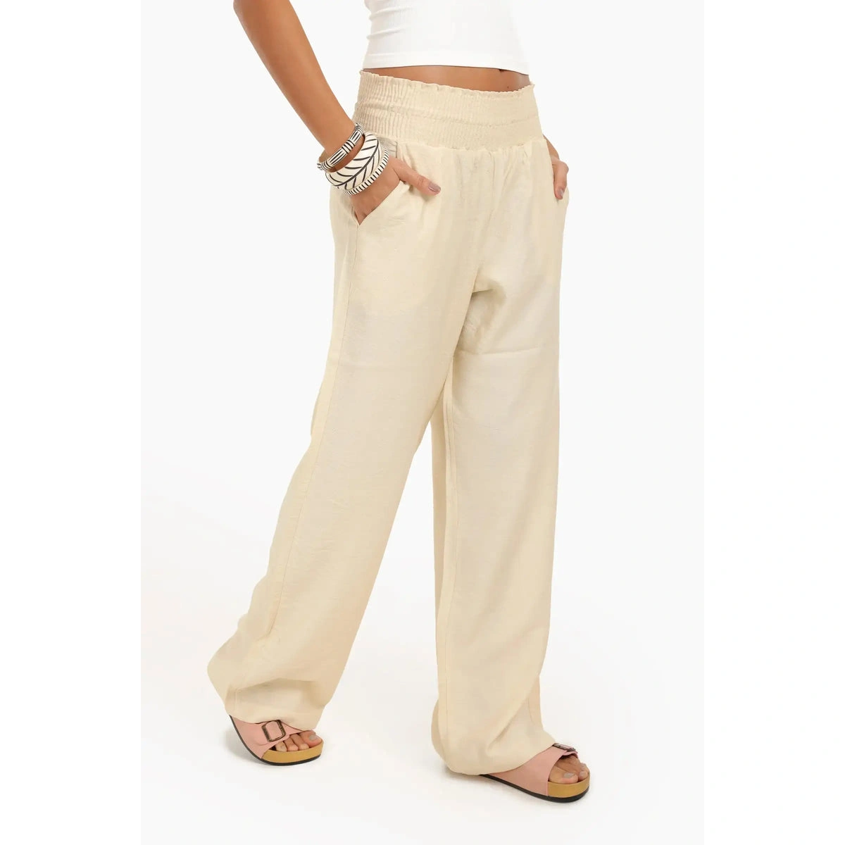 استمتعي بأجواء الصيف بأناقة مع بنطلون شاطئ حريمي واسع بخصر عالي من كارينا 57218! التصميم المميز لهذا البنطلون يجعله الخيار المثالي لكل سيدة تبحث عن الراحة والأناقة في نفس الوقت. مصنوع من خامات خفيفة ومريحة، يوفر لك حرية الحركة والتهوية اللازمة أثناء الاستمتاع بأشعة الشمس أو التجول على الشاطئ. بخصره العالي، يقوم بتحديد الجسم بطريقة رائعة ويضفي لمسة عصرية على إطلالتك. لا تفوتي فرصة اقتناء هذا البنطلون الرائع، فهو الخيار الأمثل لتنسيق مختلف الإطلالات الصيفية سواء مع تي شيرت بسيط أو بلوزة أنيقة. غني عن القول، أن بنطلون شاطئ حريمي واسع من كارينا سيصبح رفيقك المثالي في كل مغامراتك الصيفية!
