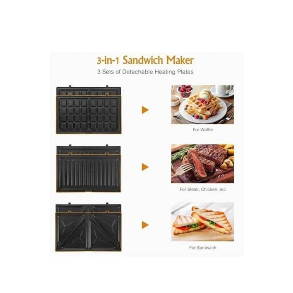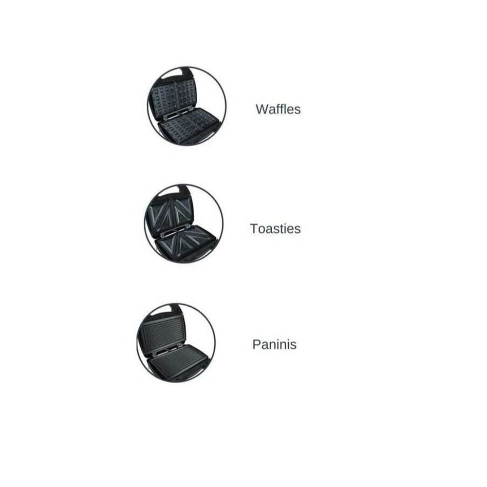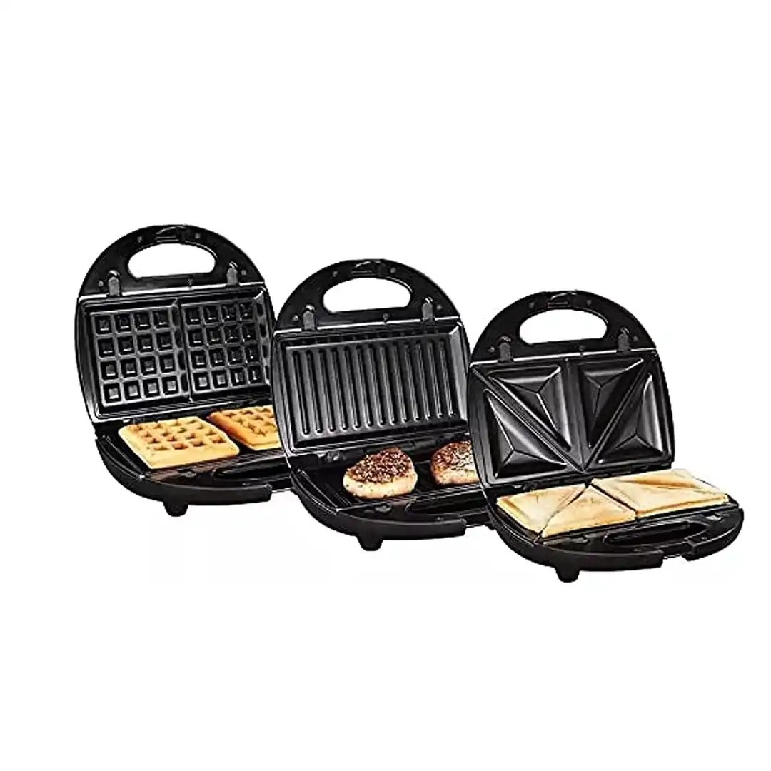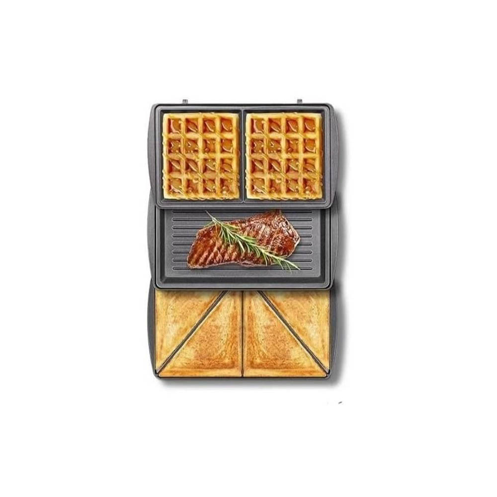 ساندويتش ميكر 3 في 1، هيساعدك تحضر السندوتشات، الوافل، والبانكيك بشكل أسرع. مع تصميم عصري باللون الأسود، هتستمتع بوجباتك في دقائق.