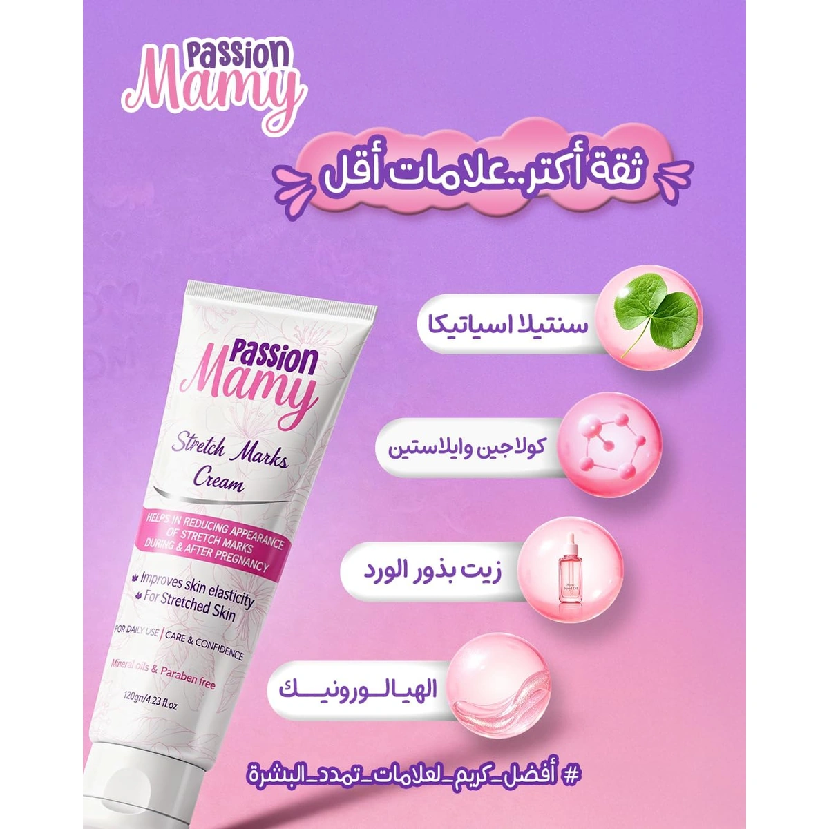 استعيدي مرونة بشرتك وقللي من ظهور علامات التمدد مع كريم باشن ماني من Passion Baby. تركيبة غنية بمستخلصات السنتيلا والكولاجين لترطيب عميق وتجديد طبيعي لبشرة ناعمة ومشرقة.