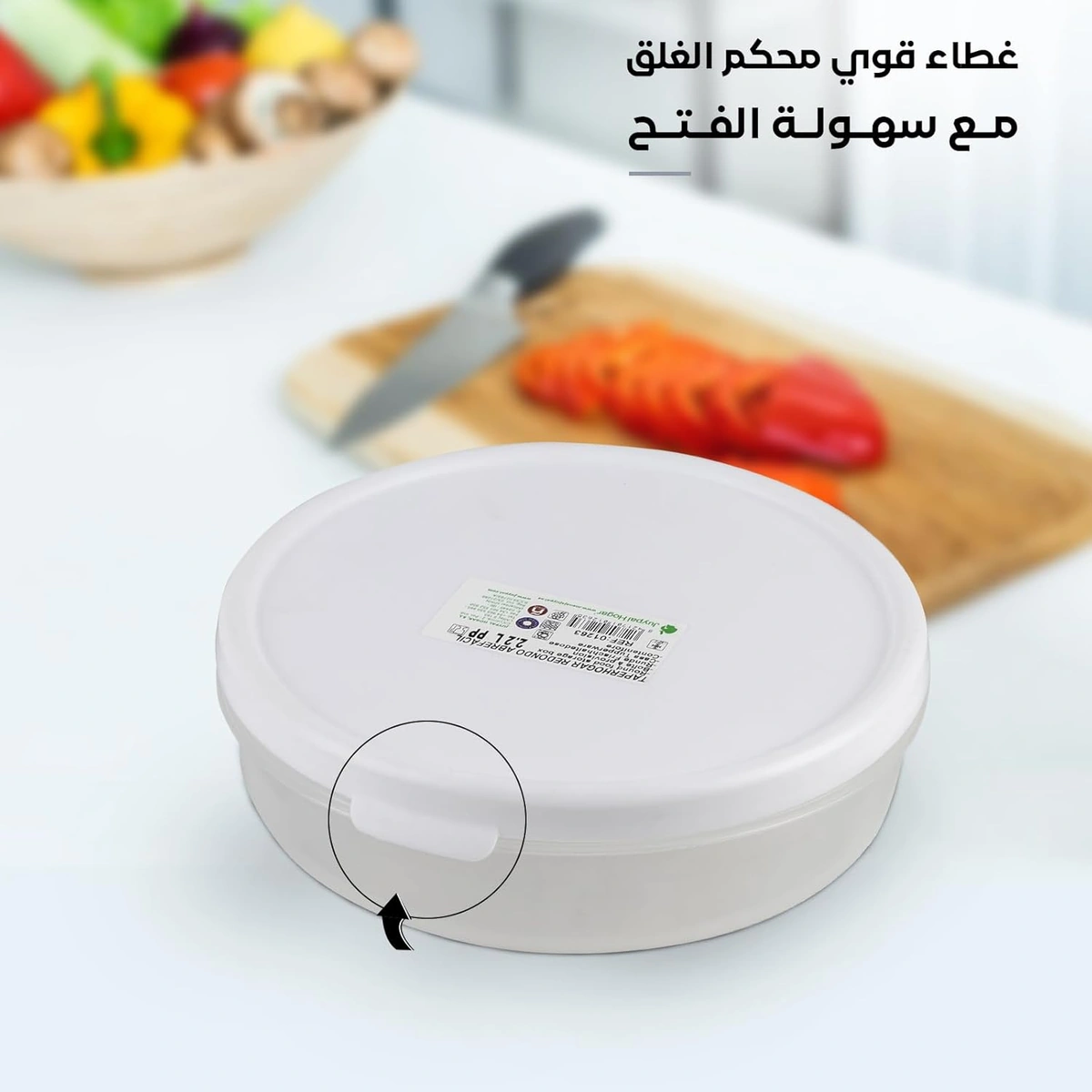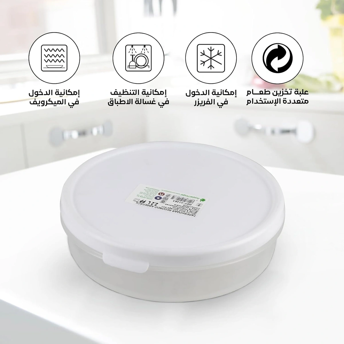 علبة حفظ طعام دائرية دائرية وعملية لحفظ الأكل أو بقايا الوجبات بشكل مرتب. مناسبة للاستخدام اليومي وسهلة التنظيف.