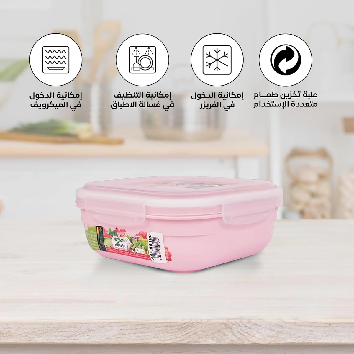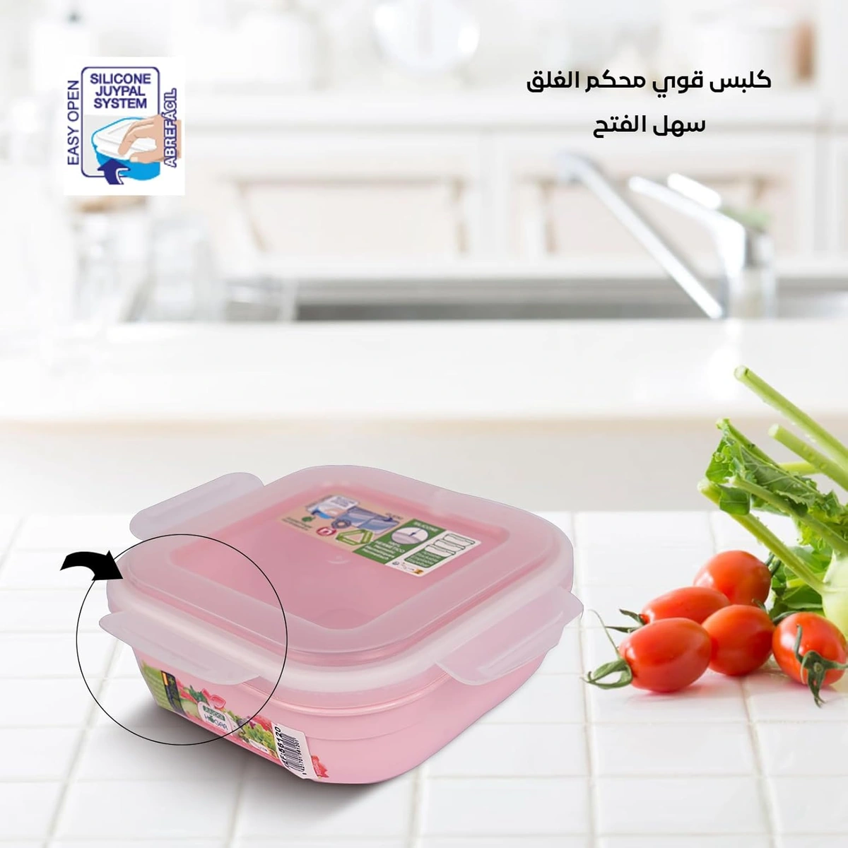 علبة حفظ طعام بقفل جانبي بقفل جانبي يساعد على غلقها بإحكام وحفظ الأكل بشكل أفضل. مناسبة للثلاجة وسهلة التنظيف.