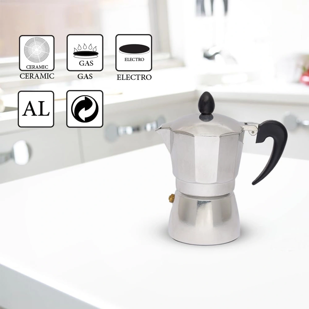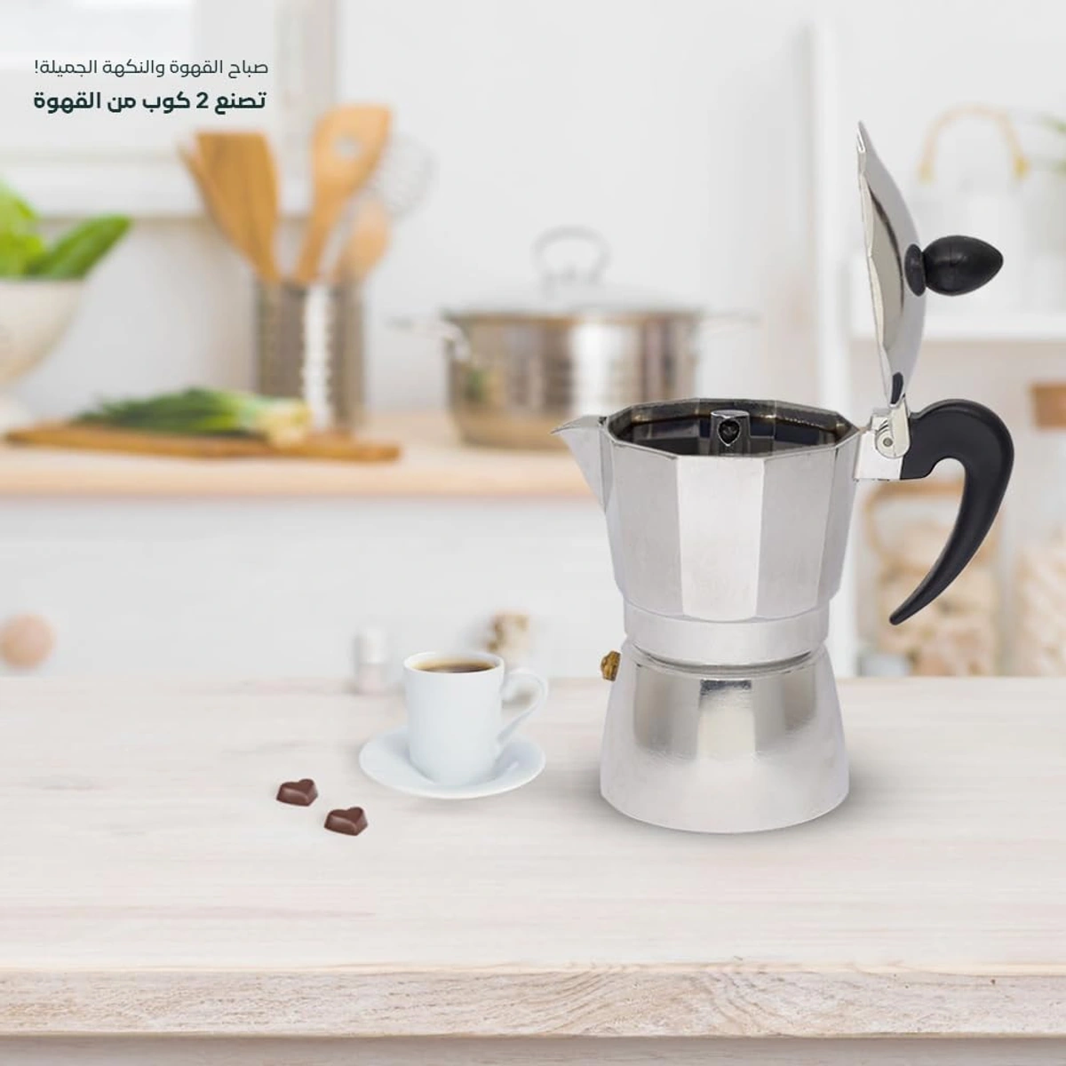 ماكينة قهوة موكا عملية لتحضير القهوة بشكل سريع ومريح. مناسبة للاستخدام اليومي وسهلة الاستخدام.