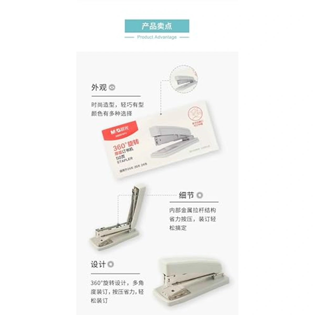 دباسة M&G 360 درجة، مثالية للمكاتب والاستخدامات المتعددة، تدبس حتى 50 ورقة بسهولة ودقة عالية بفضل تصميمها المعدني المتين.