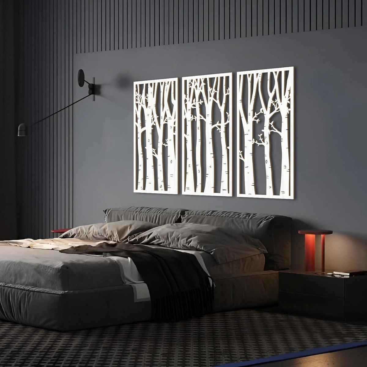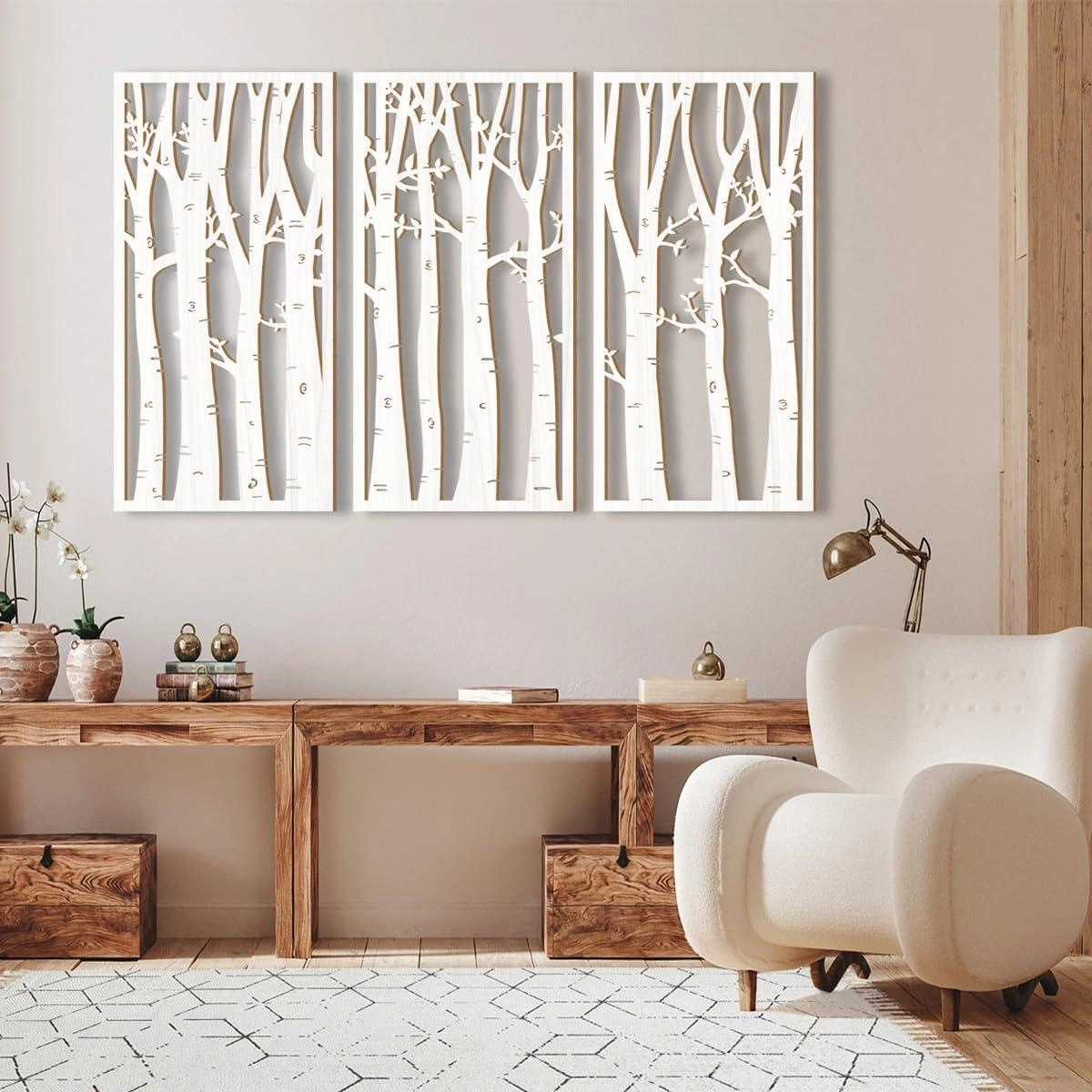 أضف لمسة من الأناقة الاسكندنافية لمنزلك مع مجموعة لوحات ATM الفنية الجدارية المكونة من 3 قطع. مصنوعة من خشب MDF عالي الجودة باللون الأبيض الهادئ، لتجديد ديكور أي غرفة بسهولة وجمال.