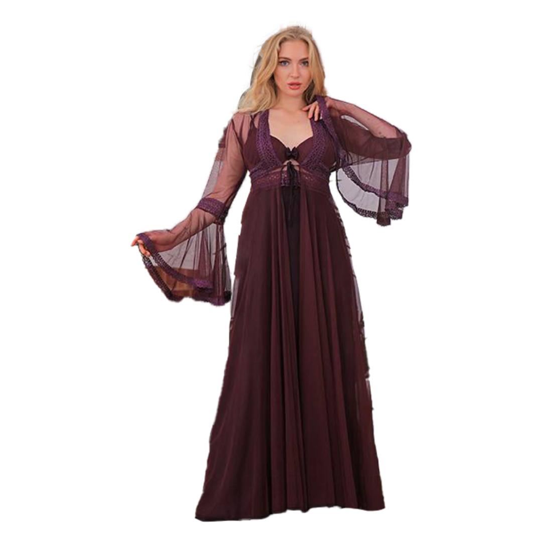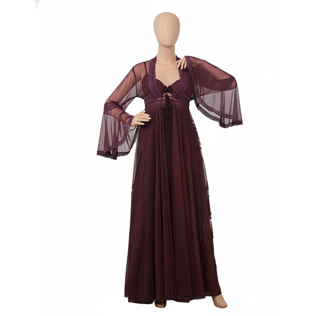 قميص نوم طويل مفتوح من الخصر والاطراف - 2 قطعة - 1052