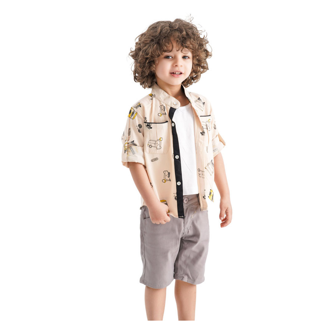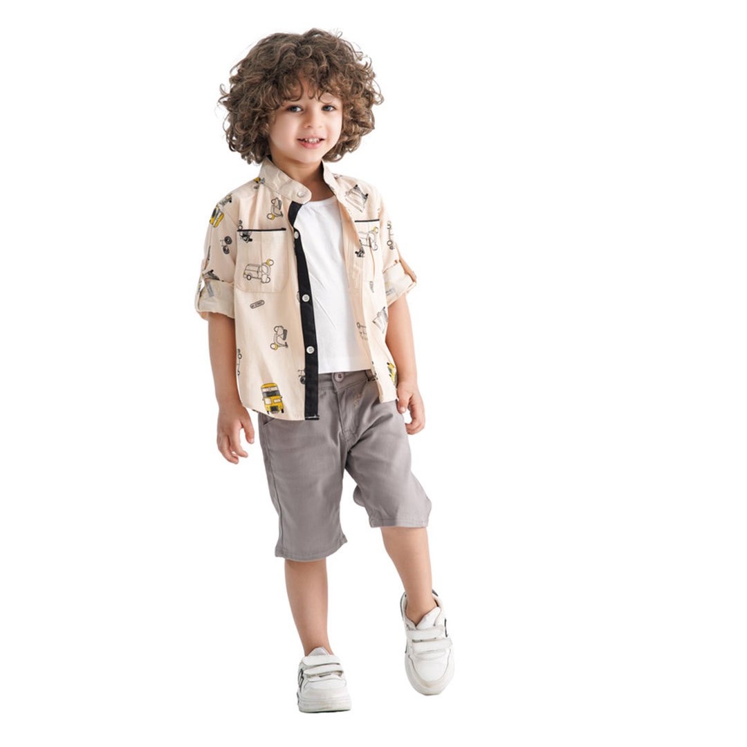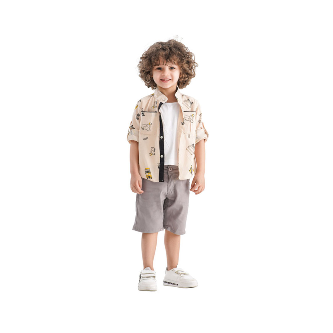 - طقم أولادي قميص و شورت - بيج/رمادي - MA-MU-906