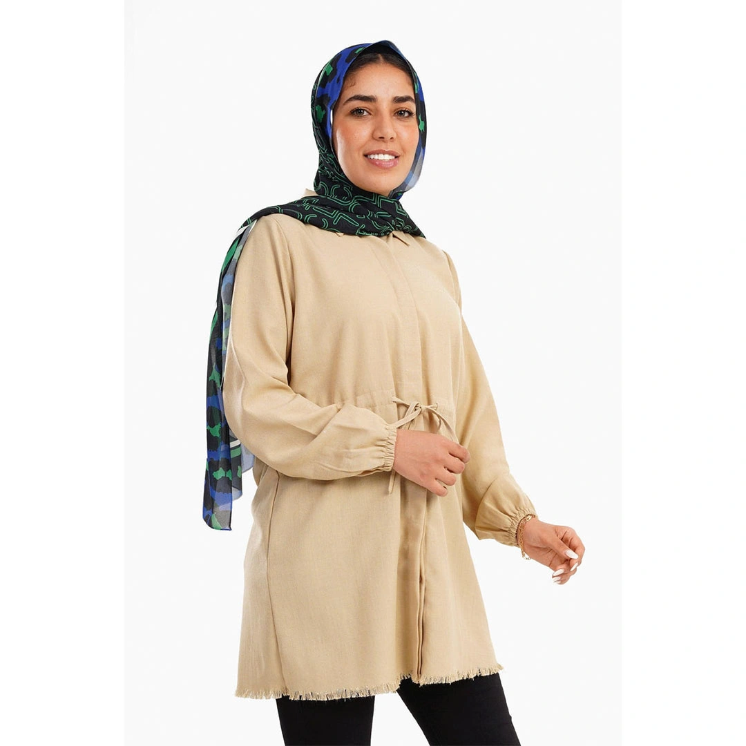 القميص التنسيل ده تحفة بجد! خامته تنسيلناعمة ومريحة جداً، وكمان صديقة للبيئة. الـ موديل لابس مقاس Mعشان تقدري تتخيلي شكله عليكي. القصة بتاعته واسعةوهتريحك في الحركة، والـ نقشة سادةبتخليه شيك ومينفعش يقدم أبداً. الـ ياقة قميصبتدي له شكل كلاسيكي، والـ غلق بأزرارمع صف أزرار مخفي بالكاملبيخليه شكله نضيف ومرتب. الـ أكمام طويلةوفيها أساور مرنة مغلقةعشان تكون مريحة في اللبس، والـ رباط عند الخصربيخليكي تتحكمي في شكله براحتك. الـ حافة غير مكتملةبتدي له لمسة عصرية ومختلفة. سهل جداً في اللبس وهينفعك في كل المناسبات. ممكن تلبسيه مع جينز وكوتشي عشان لوك كاجوال، أو تدخلي طرفه جوه بنطلون عالي الوسط مع حزام عشان لوك أنيق، أو تلبسيه مفتوح على توب وبنطلون ليجنز عشان لوك صيفي خفيف. القميص ده هيخليكي دايماً شيك ومرتاحة!